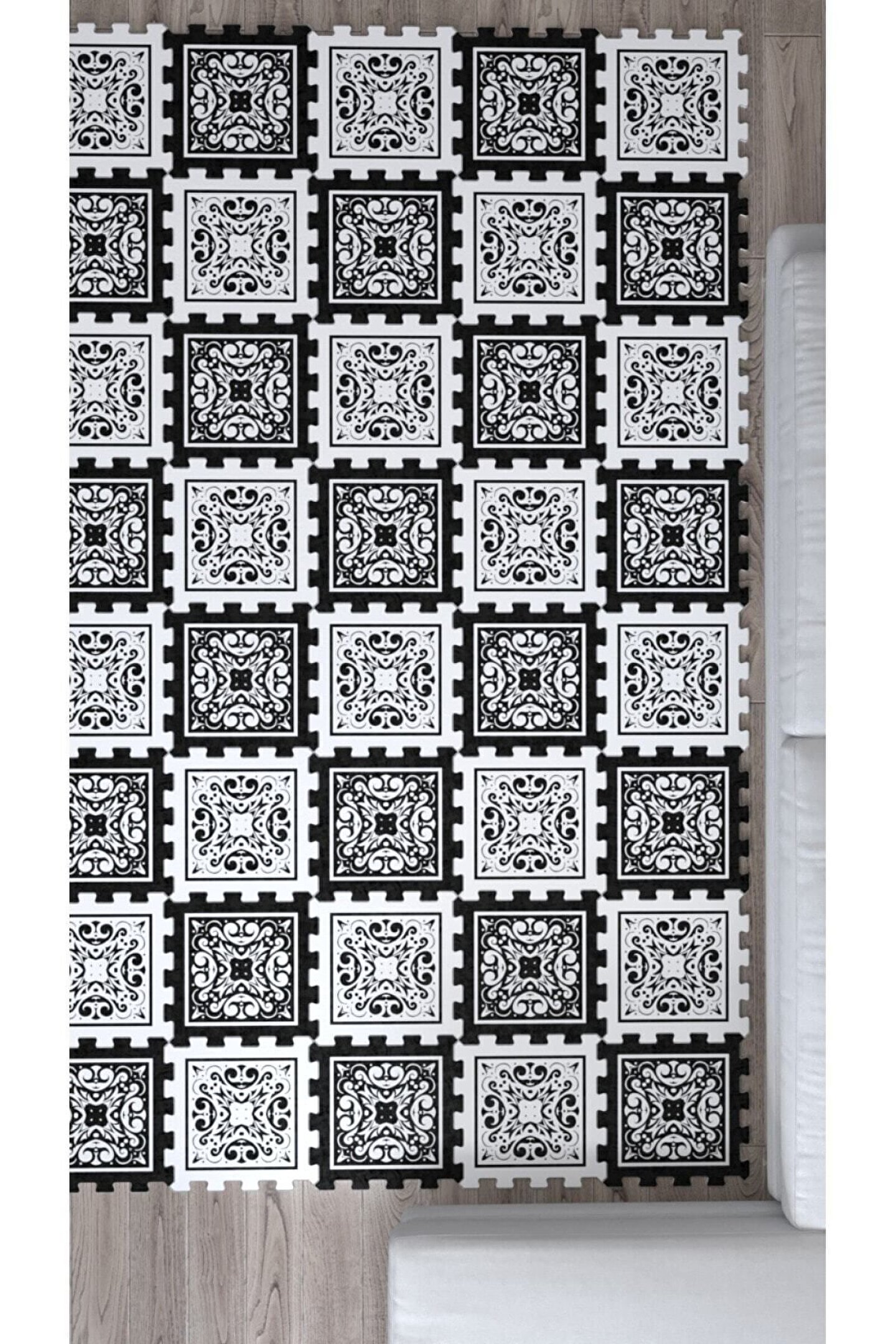 Tokyo Halı Siyah Beyaz Puzzle Halı Desenli Şık Salon Halısı Ths44 | Yapboz Halı | Puzzle Halı