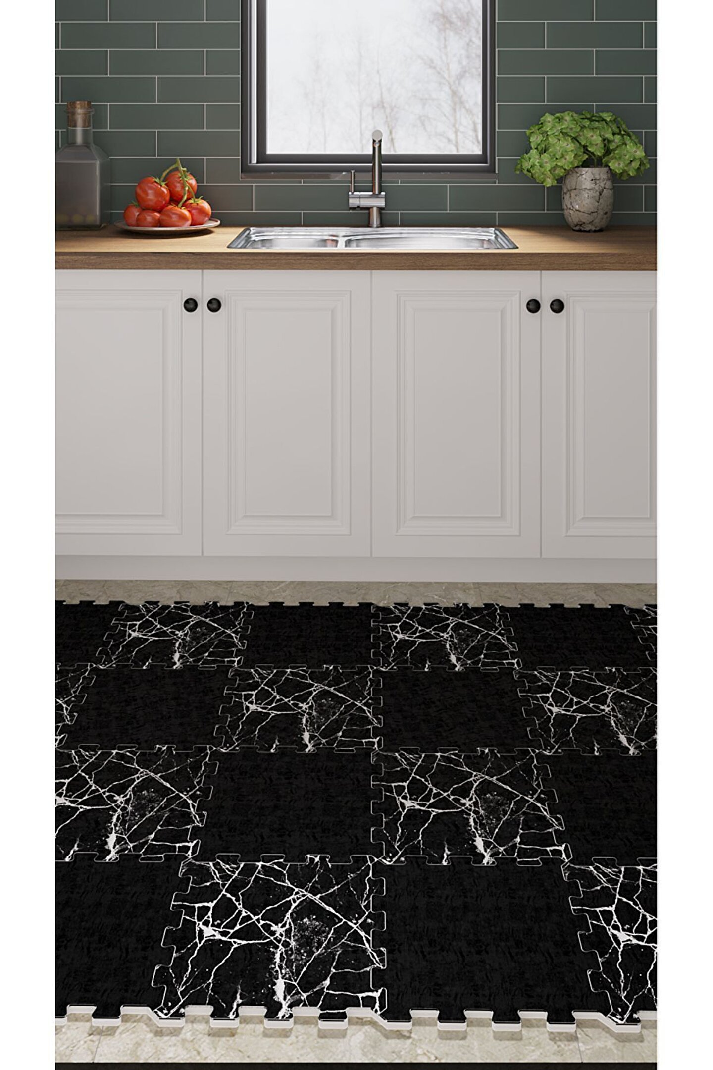 Tokyo Halı Siyah Su Geçirmez Mutfak Halısı Thm30 | Yapboz Halı | Puzzle Halı