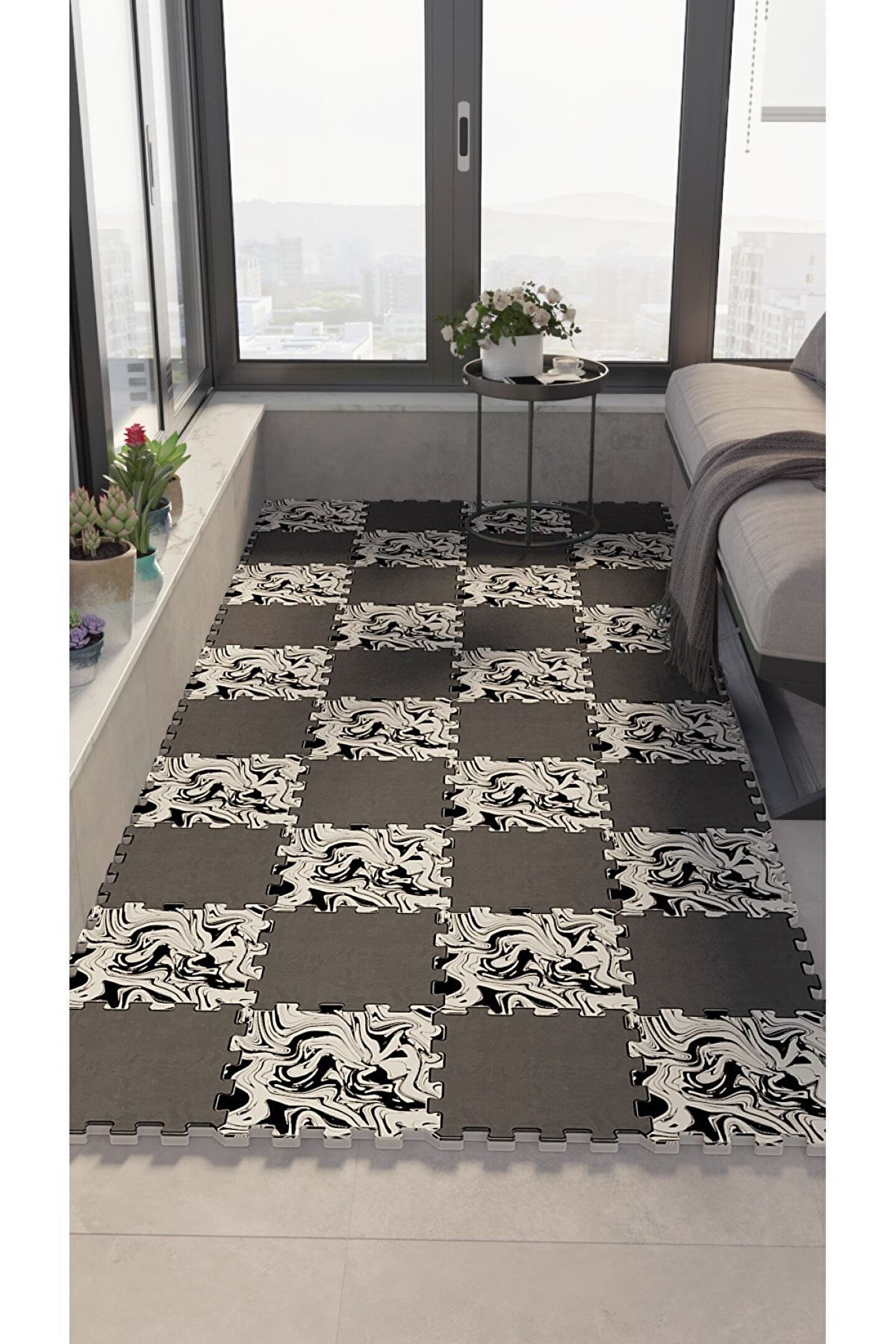 Tokyo Halı Su Geçirmez Mermer Desenli Balkon Halısı Thb28 | Yapboz Halı | Puzzle Halı