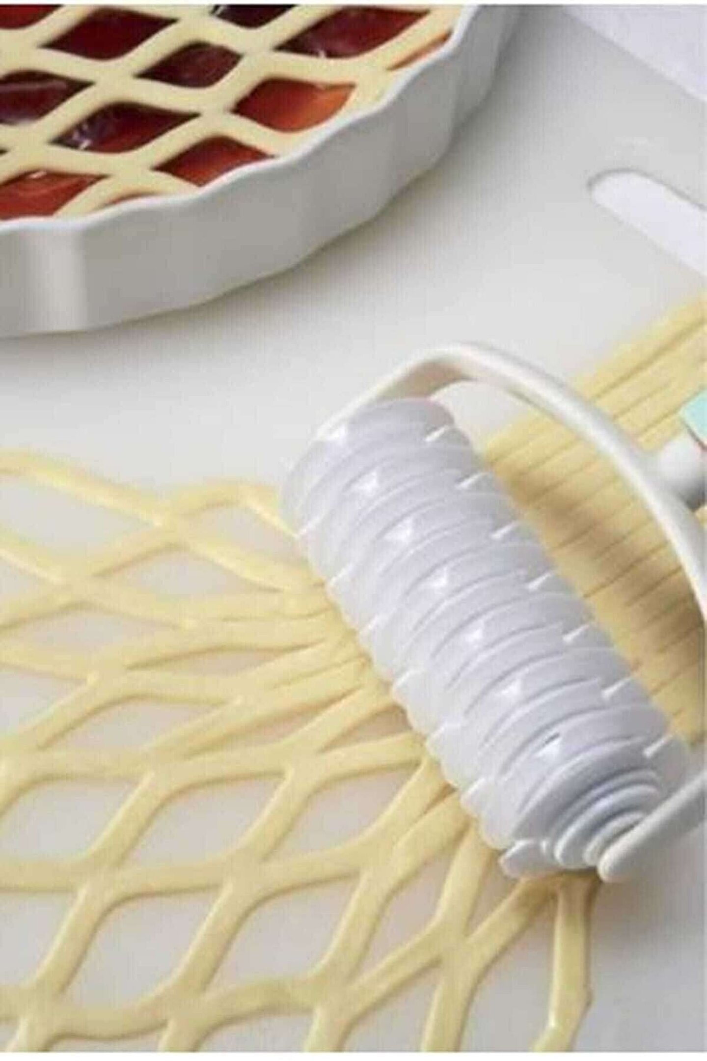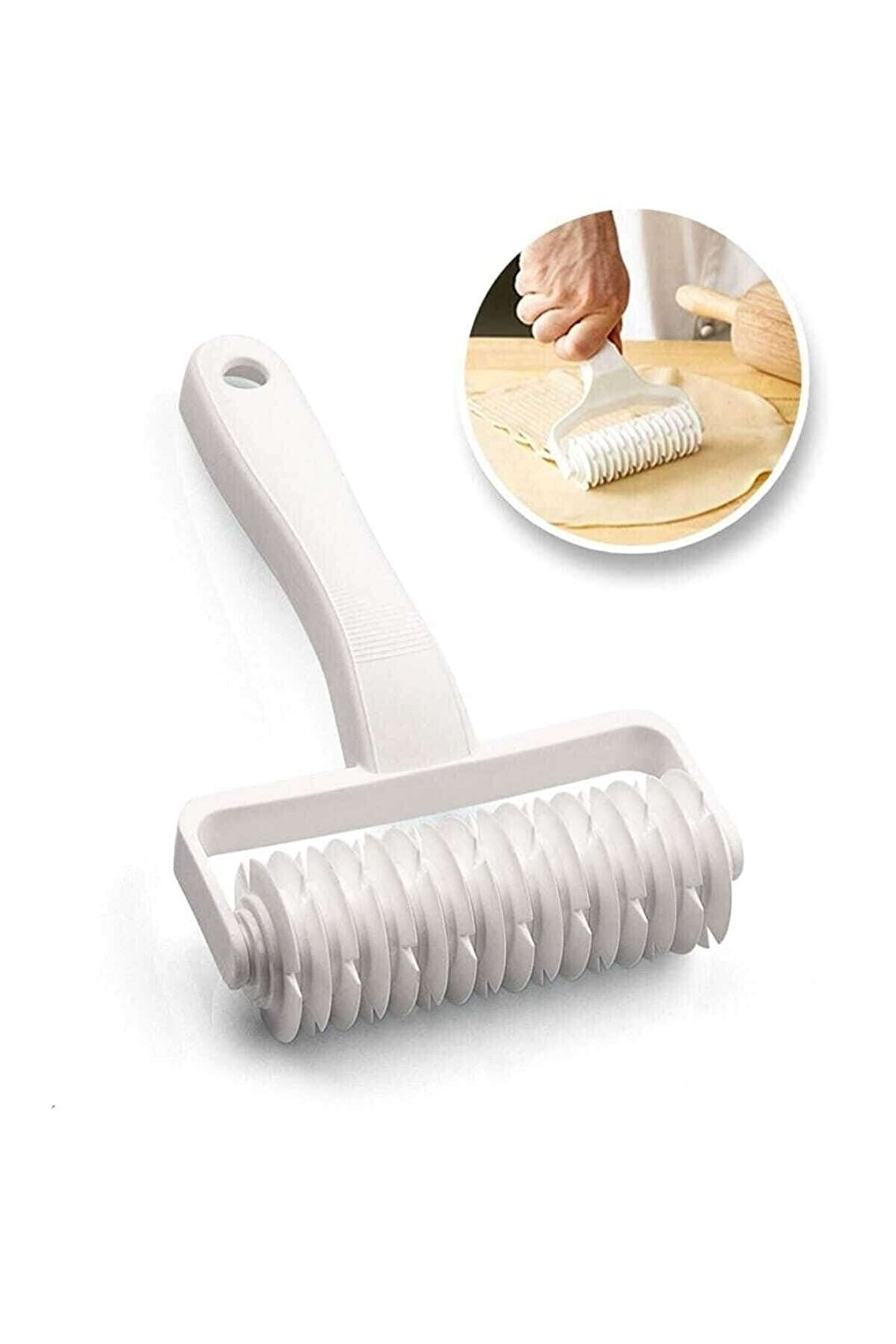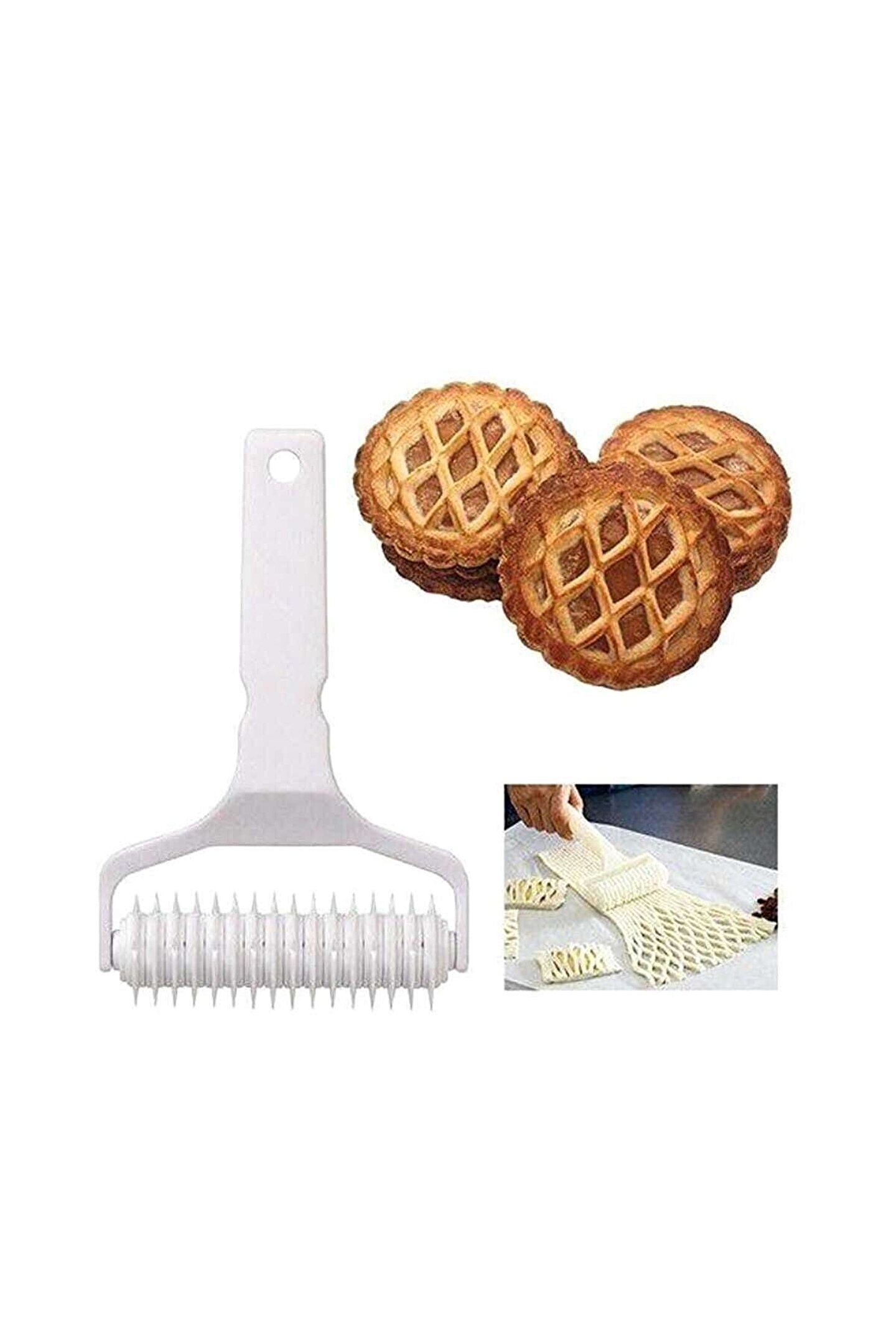 Kafes Şekilli Hamur Kesici en : 12 cm boy : 19 cm ürün, son derece kolay kullanımlıdır, sanki bir boya rulosu gibi sadece döndürerek hamurunuza kolayca şekil verebilirsiniz. Bu yolla enfes milföy ürünleri yapabilir, farklı şekil ve görünümlerde pasta, kurabiye, hamur tatlıları, turtalar ve kekler hazırlayabilirsiniz. Mutfakta zaman geçirmeyi seven herkesin keyifle kullanabileceği bir alettir. Bulaşık makinesinde yıkanabilir olması da, ürünün bir başka iyi özelliğidir. Böylece temizliği ile de zaman kaybetmenize gerek kalmaz. Hamur kesici hamur silindiri gıda temasına uygun plastik türünden üretilerek insan sağlığına zarar verici maddeler içermez.