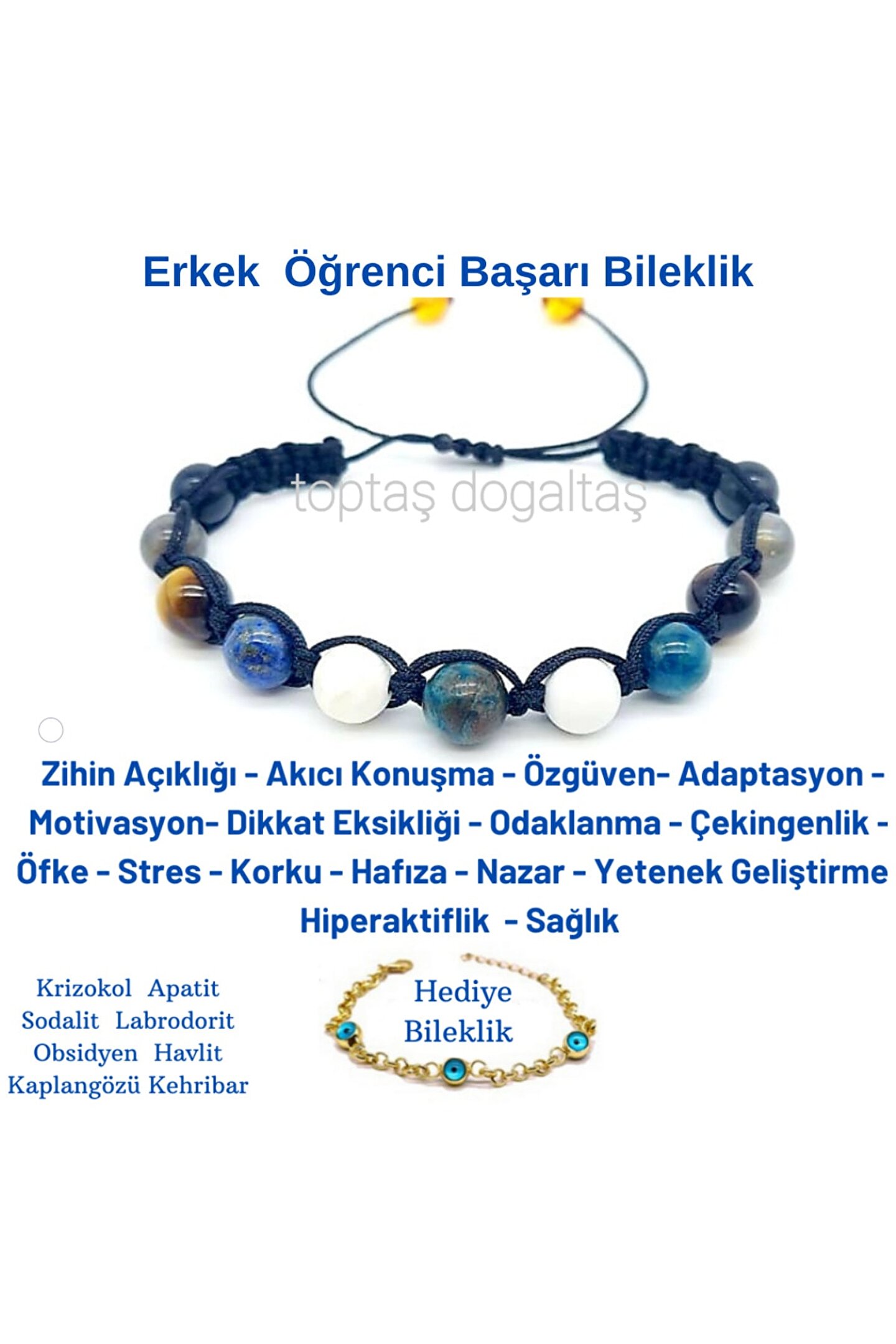 DOĞALTAŞ ERKEK ÖĞRENCİ BAŞARI BİLEKLİĞİDİR. ; DOĞALTAŞLAR, KRİZOKOL APATİT SODALİT LABRODORİT OBSİDYEN HAVLİT KAPLANGÖZÜDÜR. ; DAYANIKLI PARAŞÜT İPİ KULLANILMIŞTIR. ; ÖRGÜLÜ, ASANSÖRLÜ VE AYARLANABİLİR MODELDİR. ; NAZAR BONCUKLU BİLEKLİK HEDİYEDİR. ; TOPTAŞ DOĞALTAŞ ÜRÜNÜNÜN BENZERİNİ SATAN DİĞER MAĞAZALARDAKİ FİYAT FARKI SEBEBİ İLE TAŞ KALİTESİ, SAYISI VE ORİJİNALLİĞİNDEN SORUMLU DEĞİLİZ. ; ÖZELLİKLERİ, ZİHİN AÇIKLIĞI, AKICI KONUŞMA, ÖZGÜVEN, ADAPTASYON,MOTİVASYON, DİKKAT EKSİKLİĞİ, ODAKLANMA, ÇEKİNGENLİK, ÖFKE, STRES, KORKU, HAFIZA, NAZAR, YETENEK GELİŞİMİ, HİPERAKTİFLİK.;