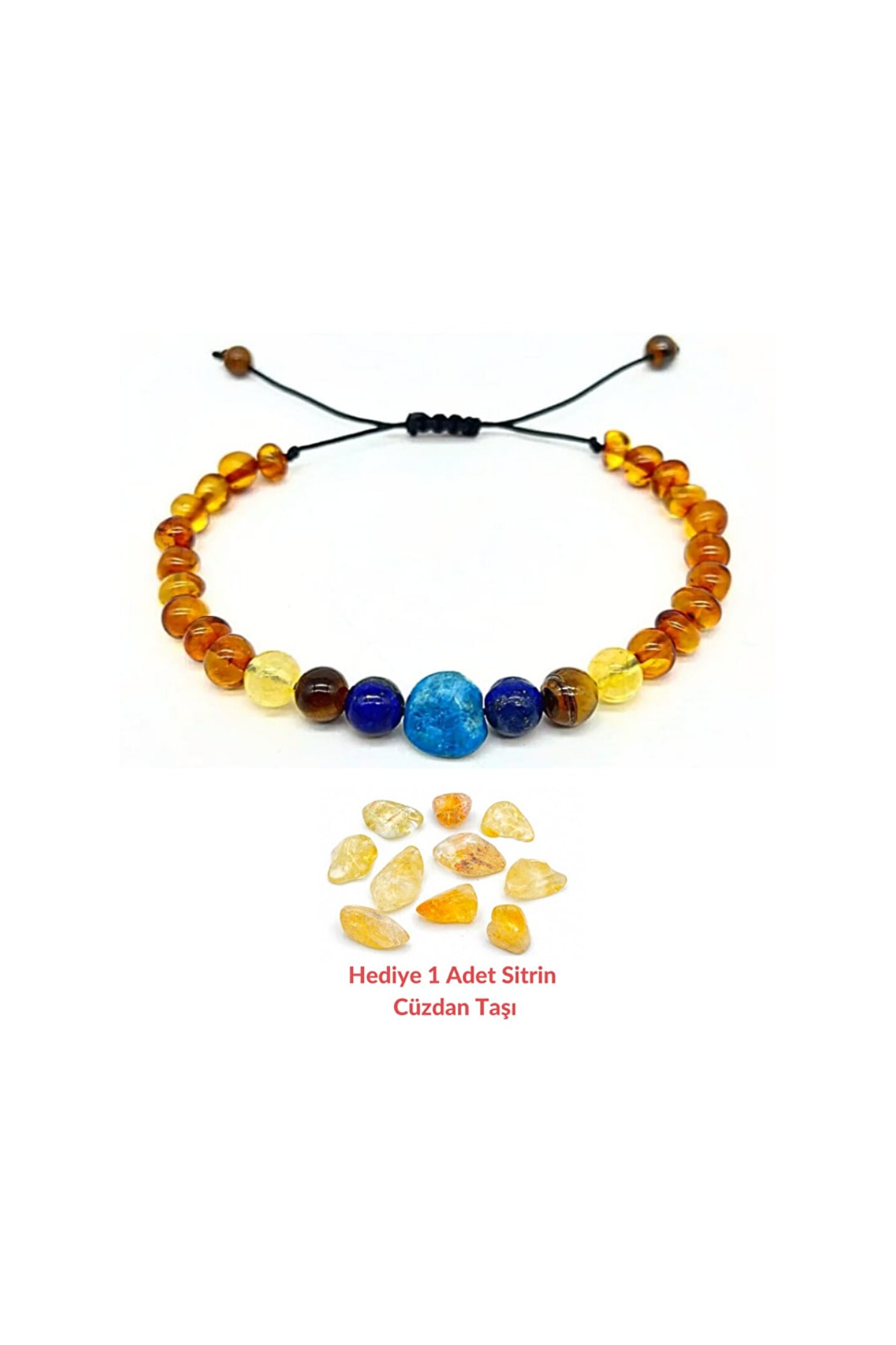 Kehribar ve Doğal Taşlı Çocuk Bileklik. ; Orijinal Sertifikalı Baltık Damla Kehribar ve Doğal Taşlı Bileklik. ; Bileklikde, kullanılan Doğal Taşlar : Apatit, Sitrin, Lapislazuli ve Kaplangözü. ; Litvanya”dan ithal 100 % orijinal baltık damla kehribardır, orijinallik sertifika kartı ile birlikte gönderilir. ; Bileklik, asansörlü ve ayarlanabilir modeldir. ; Kullanım bilgisi ürün ile birlikte gönderilir. ; Damla Kehribar Faydaları Diş çıkarma döneminde bağışıklık da kısmen düştüğü için kehribarın bağışıklığı güçlendirme özelliği de devreye girdiği ve böylece olası enfeksiyonlara karşı bebeğinizi korur. ; Kehribarın en önemli özelliği ‘ağrıları’ yok etmesidir. ; Kehribar sindirim sistemini güçlendirir bu sayede bebeklerin gaz sancısı azalır. ; Kehribarın oluşan diş ağrısını ve salya akıntısını azaltır. ; Uyku sorunlarına iyi gelmektedir Gelişimi için faydalıdır. ; Nazardan korur. ; Sindirimi düzenler. ; Astım, Bronşit ve Alerji problemlerine yardımcı olur. ; Ayrıca kehribar statik elektriği de topladığı için çocuğumuzu negatif enerji akışından da korur. ; Apatit, Sitrin, Lapislazuli ve Kaplangözü Doğal Taşların Faydaları Öfke, Kıskançlık, Korkuları Yenme, Cesaret ve Özgüven, Alt Islatma, Konuşma Bozukluğu, Kekeleme ve Akıcı Konuşma, Kolay Öğrenme ve Hafıza Gelimi, Kemik Sağlığı ve Gelişimi. ; Yetenek Gelişimi, İletişim.;