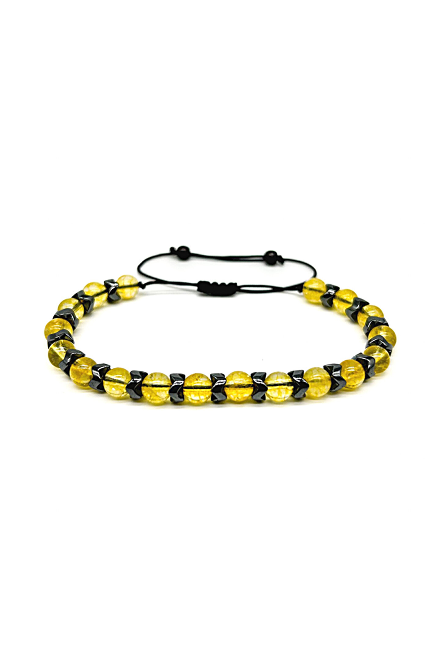 Doğal taş kullanımı sayesinde her bileklik benzersiz ve otantik bir görünüm sunar; Sitrin ve hematit gibi değerli taşların birleşimi, bilekliğe zarif bir parlaklık ve estetik bir dokunuş katar; Doğal taş materyali ile hem şıklığı hem de doğallığı bir arada yaşatır, günlük kullanım için idealdir; Hem şık hem de rahat bir aksesuar olarak, her türlü kıyafetle kolayca uyum sağlar;