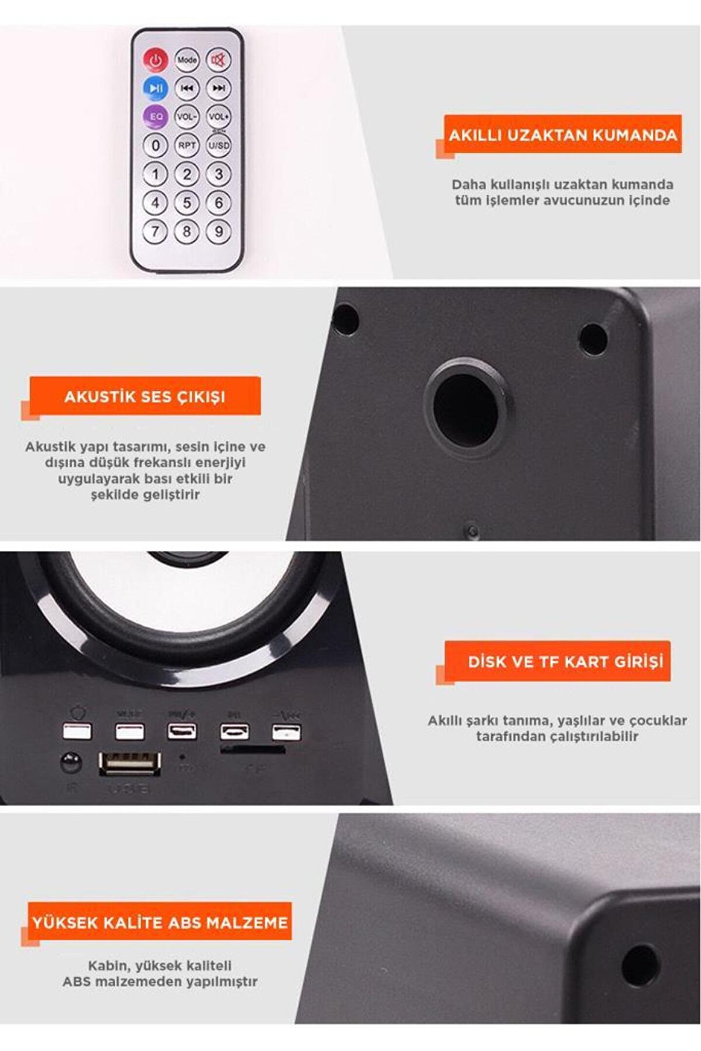 Kablosuz Bluetooth 5.0 bağlantısı: Telefonunuz, tabletiniz veya bilgisayarınız gibi Bluetooth özellikli cihazlarınızla kolayca eşleşebilirsiniz.; Güçlü ses: 20W'lık güçlü ses çıkışı ile her ortamda etkileyici bir ses deneyimi yaşayabilirsiniz.; Uzun pil ömrü: Tek bir şarjla 10 saate kadar müzik dinleyebilirsiniz.; Taşınabilir tasarım: Kompakt ve hafif tasarımı sayesinde her yere yanınızda götürebilirsiniz.; Çok fonksiyonlu: Eller serbest görüşme, TF kart ve USB bellek okuyucu gibi ek fonksiyonlara sahiptir.; Şık tasarım: Modern ve şık tasarımı ile her ortamda göz kamaştırır.