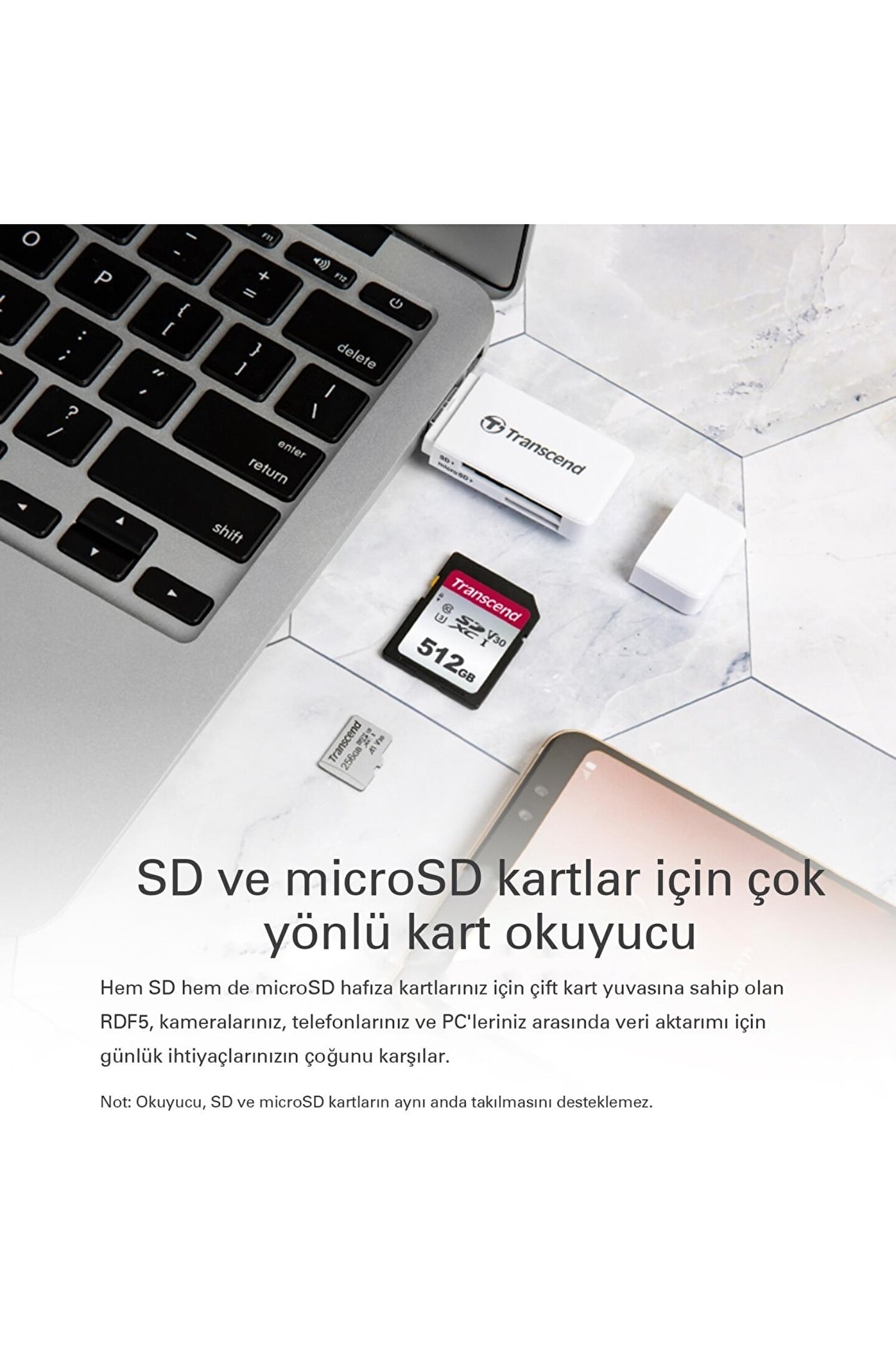 Resmi distribütör garantisi ile güvenli alışverişin keyfini çıkarın; Ts; rdf5k sd/microsd usb 3; 1 kart okuyucu, 2 yıl süreyle güvence altına alınmıştır; USB 3; 1 teknolojisi sayesinde yüksek hızda veri aktarımı gerçekleştirin; kart okuyucu, hızlı ve etkili bir şekilde dosya transferi yapmanızı sağlar; Siyah renk seçeneğiyle şık ve modern bir tasarıma sahip olan bu kart okuyucu, cihazınıza estetik bir uyum sağlar; MicroSD ve SD kart desteği ile geniş uyumluluk sunar; farklı hafıza kart türleriyle uyumlu çalışarak çeşitli medya dosyalarını kolayca aktarmanızı mümkün kılar;