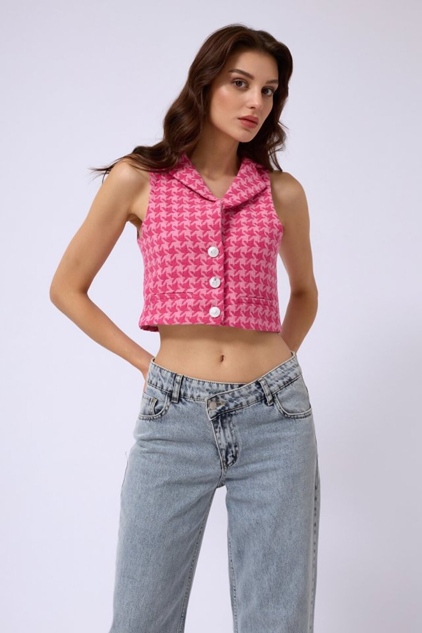 trend_ermege Gökyüzü Moda Kazayağı Crop Yelek