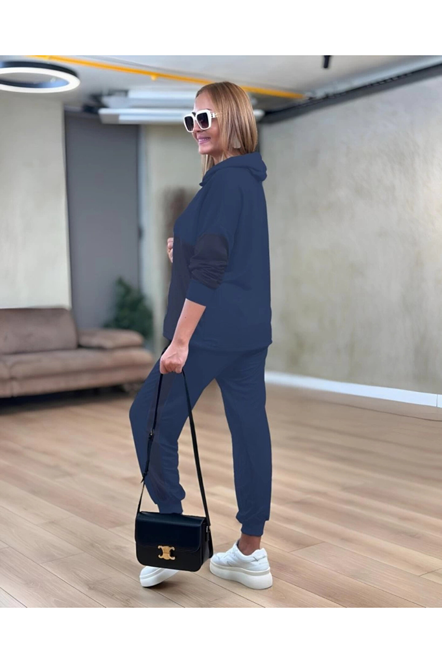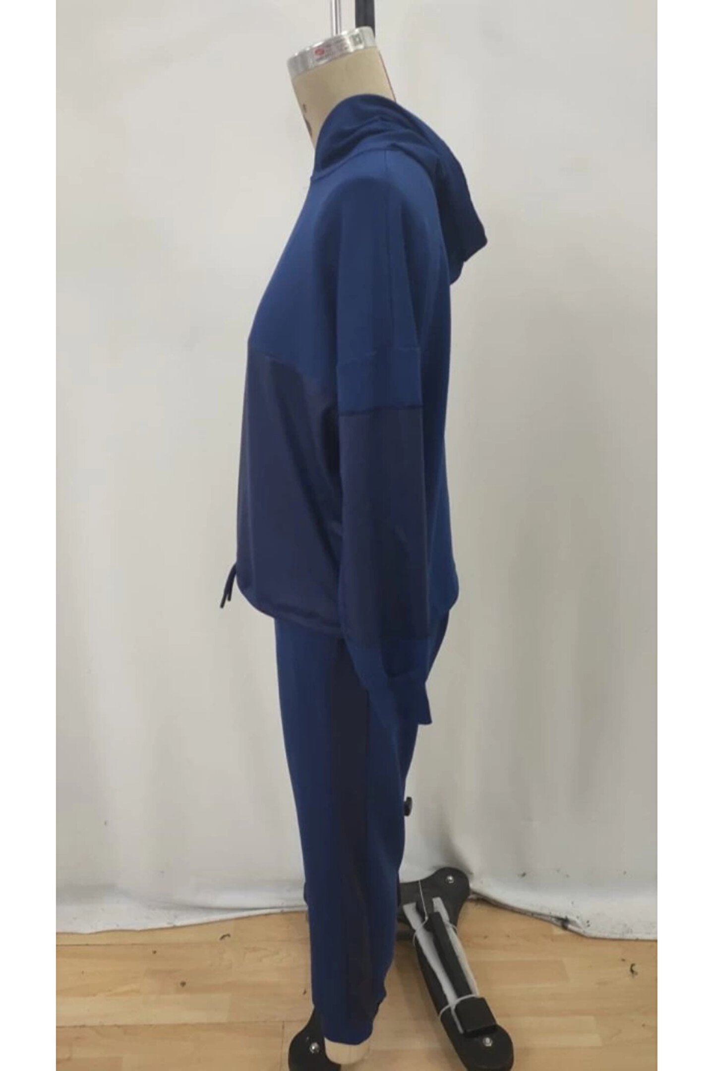 Kadın Uzun Kollu Kapşonlu Viskon Iki Iplik Bluz Ve Pantolon Ikili Takım