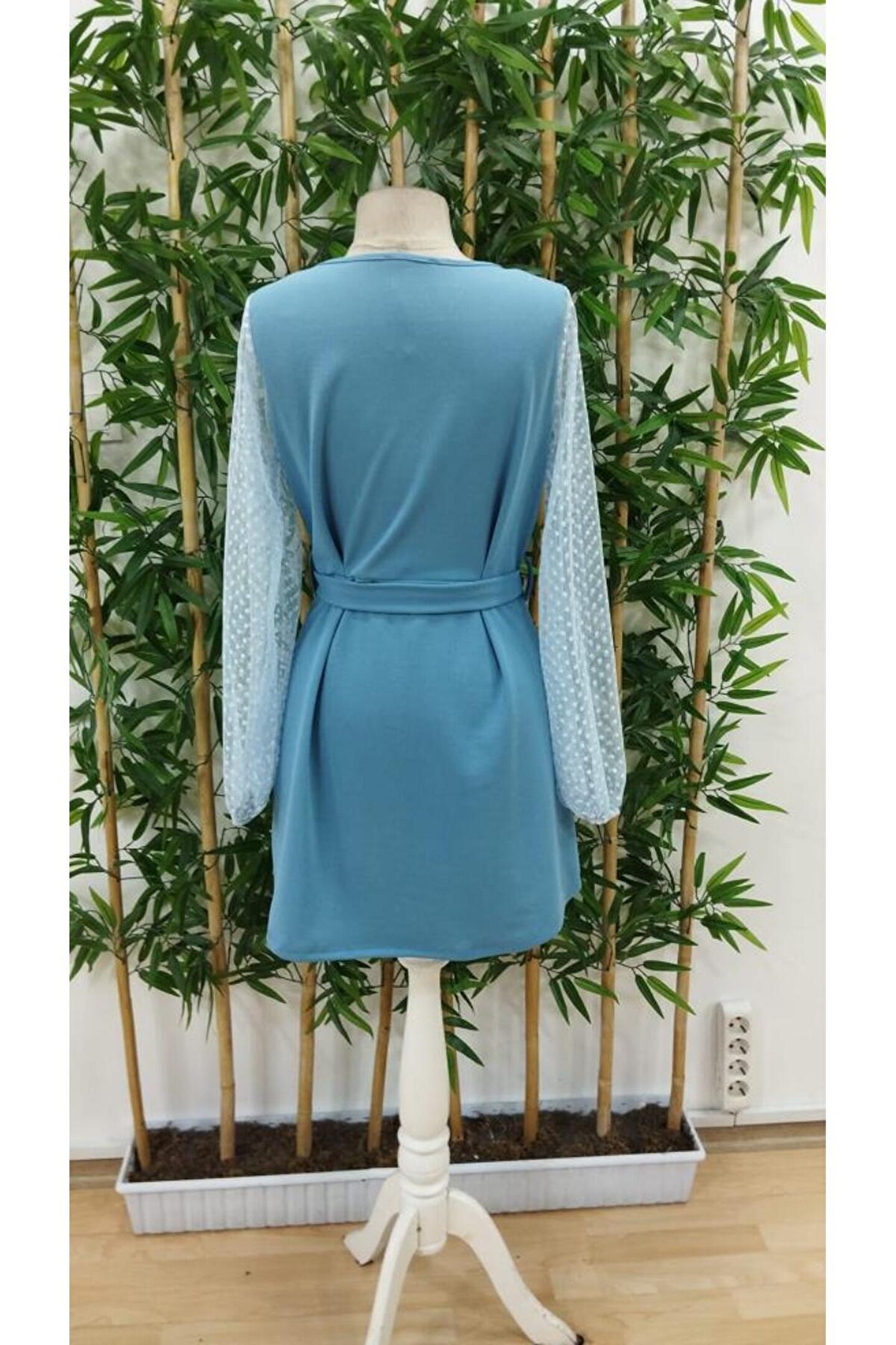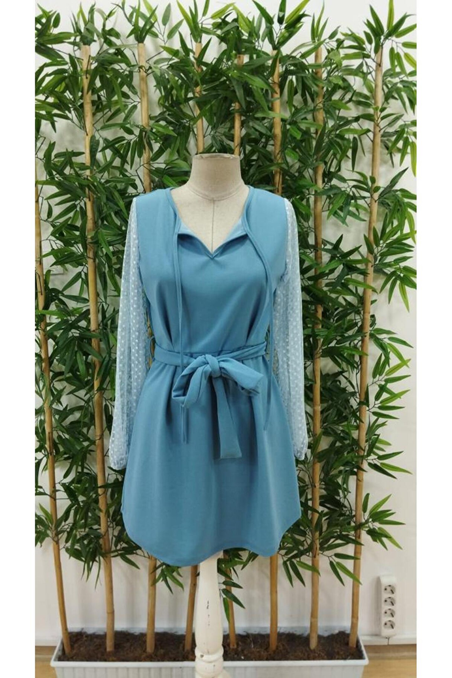 trend_ermege Kadın Uzun Kollu Yakadan Bağcıklı Belden Kuşaklı Ithal Krep Elbise