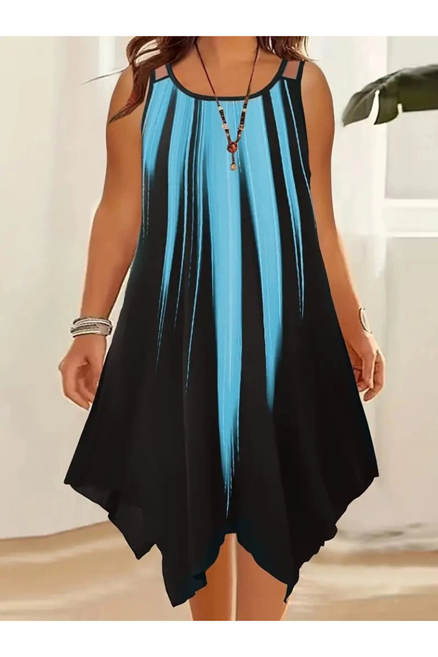 MDB Kadın Askılı Yuvarlak Yaka Asimetrik Detaylı Desenli Süprem Elbise
