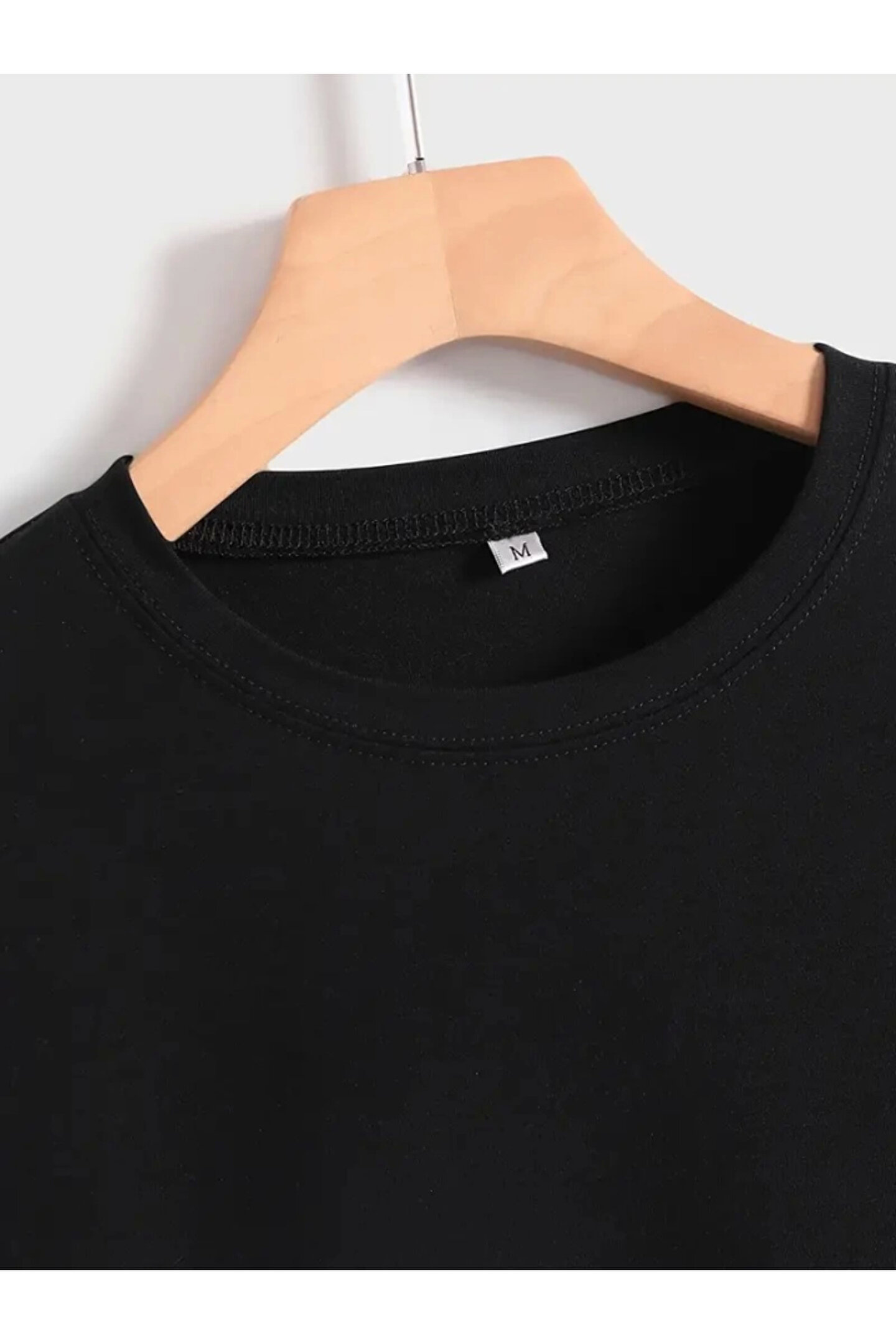 Baskılı Oversize Bisiklet Yaka T-shirt - Siyah