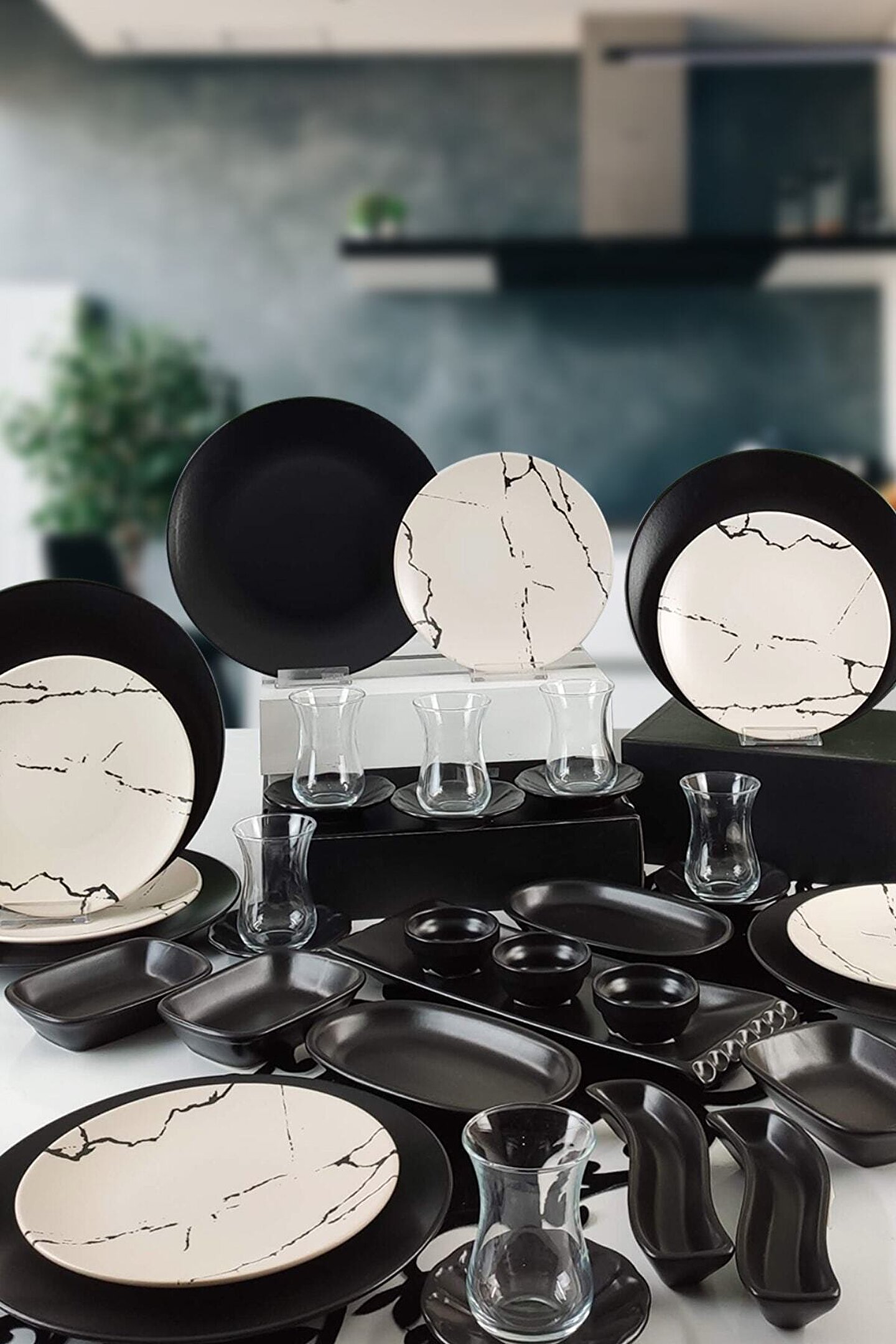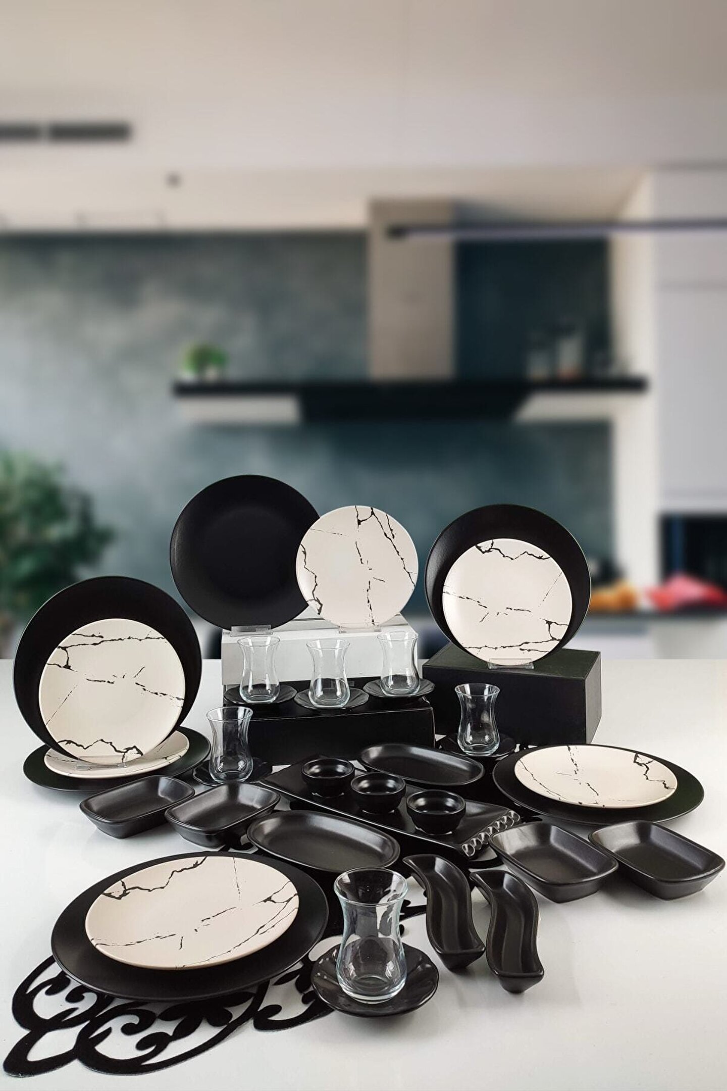 6 Adet Siyah Mat 25cm Servis Tabağı; 6 Adet Keraart Krem 20cm Kahvaltı Tabağı; 6 Adet Siyah Mat Çay Tabağı; 6 Adet Çay Bardağı; 4 Adet Siyah Mat 13cm Dikdörtgen Kahvaltılık; 3 Adet Siyah Mat 7cm Joker Kahvaltılık; 2 Adet Siyah Mat 19cm Kayık Tabak; 2 Adet Siyah Mat Ivory Zeytinlik; 1 Adet Siyah Mat 33cm Kayık Tabak; Ürünlerinizin Tarafınıza Ulaştığı Şekilde Patpata Sarılı, Kutulu Ve Ambalajı Bozulmamış Olarak İade Edilmesi Gerekmektedir.Aksi Halde Gönderilen İadeler Kabul Edilemeyecektir.;