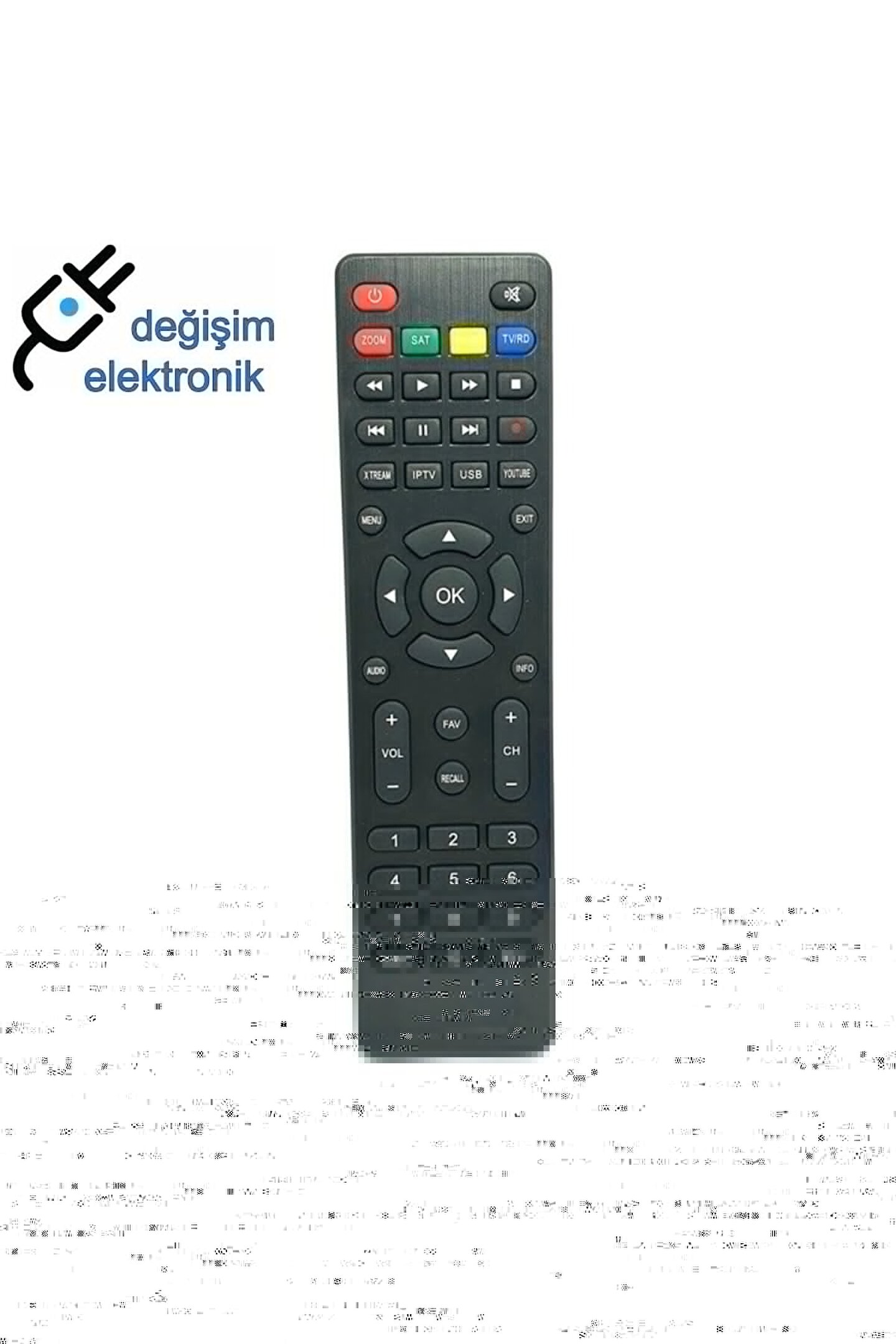Kumanda siparişi verirken kumandanızla görseldeki ürünün tuşlarının birebir uymasına dikkat ediniz. ; Ürünlerimiz kontrol edilerek gönderilir 1.KALİTE YAN SANAYİ ÜRÜNDÜR GÖNDERİLECEK ÜRÜN GÖRSEL İLE BİREBİR AYNISIDIR. ; TTEKNOLOJİK (DEĞİŞİM ELEKTRONİK-SAMSUN);