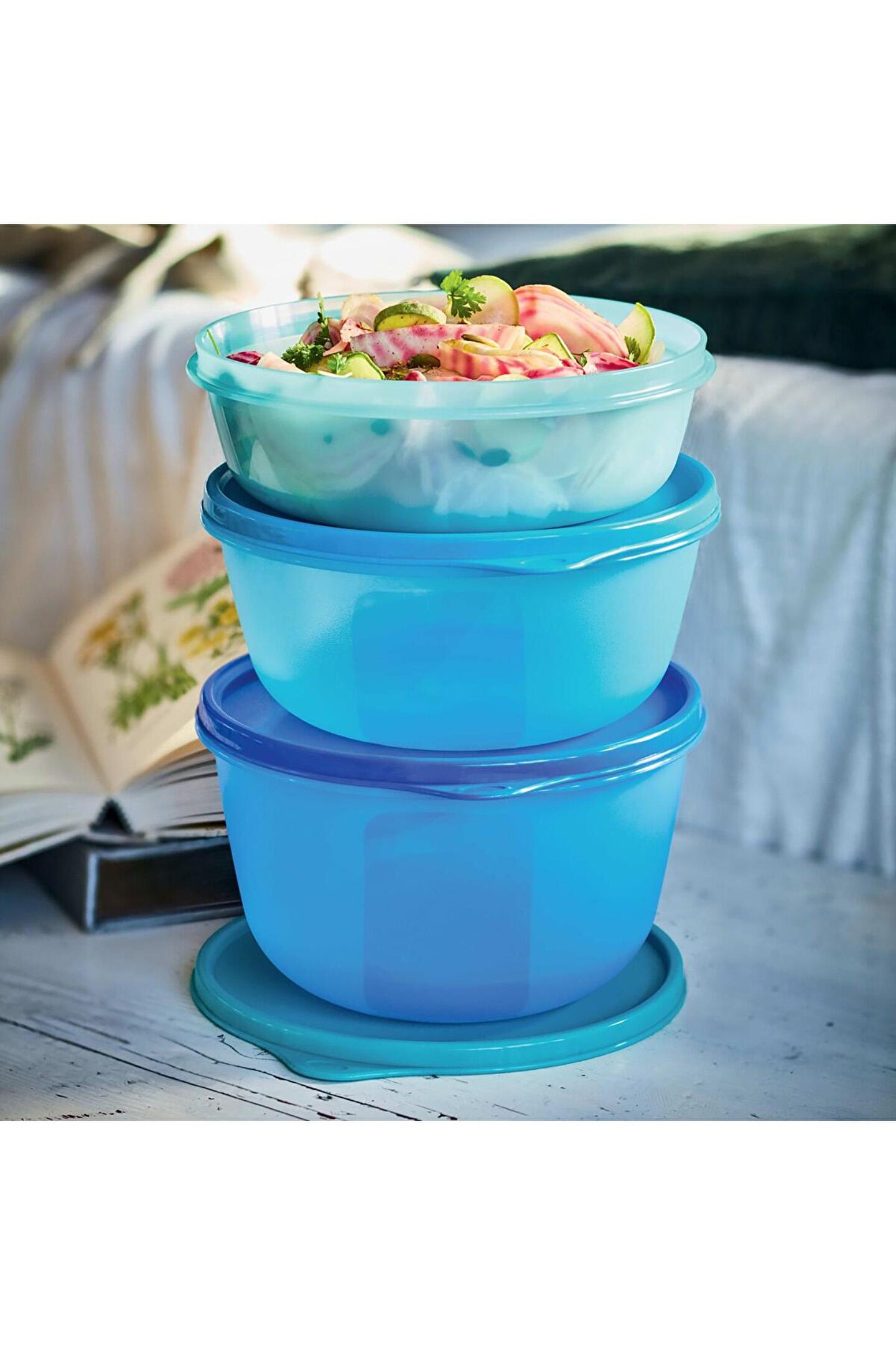 Hermetik ve su geçirmez, buzdolaplarının gözdesi: Saklama ve Servis Kapları! - Çizilmeleri önlemek için dış kısmı dokulu yapıya sahiptir.; - Havayı dışarı atmak ve gıda korumasını optimize etmek için kapaklar üzerinde sekme bulunmaktadır.; - Taşıması kolaydır.; - Kapasite: 1 x 2 L Boyutlar: 19,5 cm Ø x 11,5 cm H - Kapasite: 1 x 1.5L Boyutlar: 19,5 cm Ø x 8,5 cm Y - Kapasite: 1 x 1L Boyutlar: 19,5 cm Ø x 6 cm Y - Kapasite: 3 x 600ml Boyutlar: 16.5cm Ø x 6cm Y - Kapasite: 4 x 300ml Boyutlar: 13,3cm Ø x 5cm Y -Kapasite: 3 x 250ml Boyutlar: 11cm Ø x 5.1cm Y