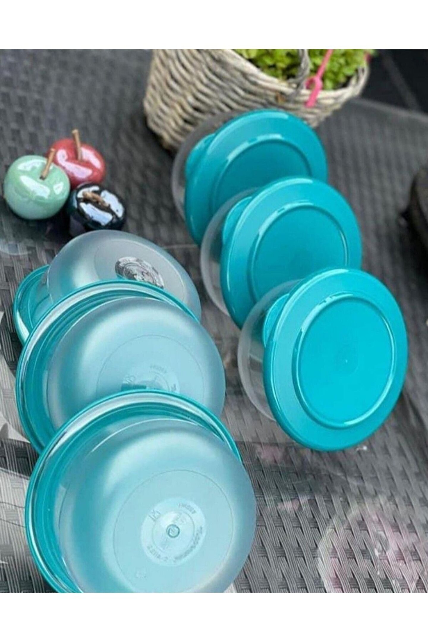 Turkuaz renkli kristal görünümlü plastik sebze kasemiz, mutfak dekorasyonunuza şık bir dokunuş ekler.; 6 adet küçük boyda olup, her biri 275 ml kapasiteye sahiptir, böylece sebzelerinizi kolayca saklayabilir ve taze tutabilirsiniz.; Dayanıklı plastik malzemesi sayesinde uzun süreli kullanım imkanı sunar ve bulaşık makinesinde yıkanabilir olması pratiklik sağlar.; Günlük kullanıma uygun tasarımıyla hem estetik hem de işlevsel bir çözüm sunarak mutfakta zaman kazandırır.;
