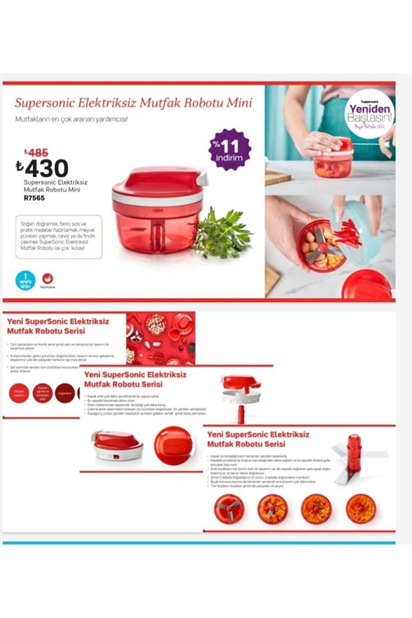 Tupperware supersonic elektriksiz mutfak robotu mini ( süper şef ) yüksek kapasite ile salatalarınıza soslar hazırlayabilirsiniz soğan ve yeşilliklerinizi kolay ve hızlı bir şekilde doğramak için idealdir ürün iplidir manuel kullanılır ipi parelel şekilde çekerek doğrama yapınız ölçü: çapı:10,8 cm yüksekliği : 9,2 cm gövde kapasitesi : 300 ml ürün yeni modeldir daha güvenli ve sağla yapıya sahiptir;