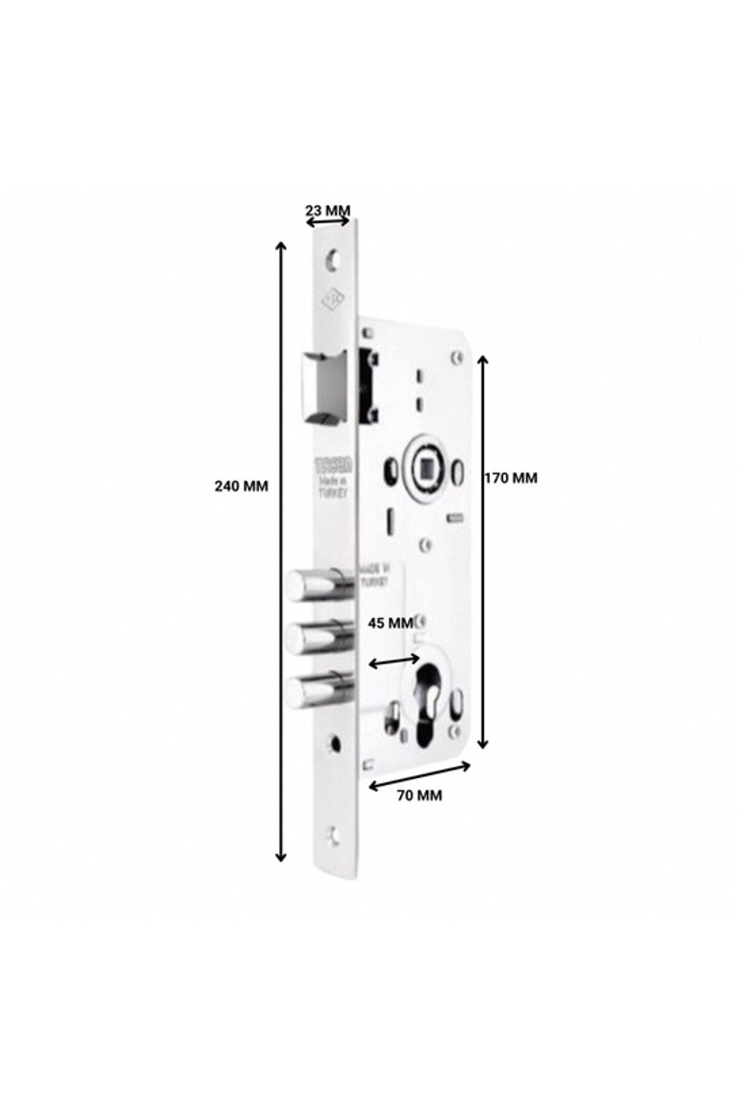 Alüminyum ve ahşap kapılar için özel olarak tasarlanmış, dayanıklı ve uzun ömürlü kullanım sunar; 45 mm genişliğindeki silindirli yapısı ile yüksek güvenlik sağlar ve kolay montaj imkanı sunar; VW Touare model araçlarla uyumlu olacak şekilde tasarlanmıştır, böylece aracınızın güvenliğini artırır; Üç milli mekanizması sayesinde zorlu koşullarda bile maksimum koruma sağlar;