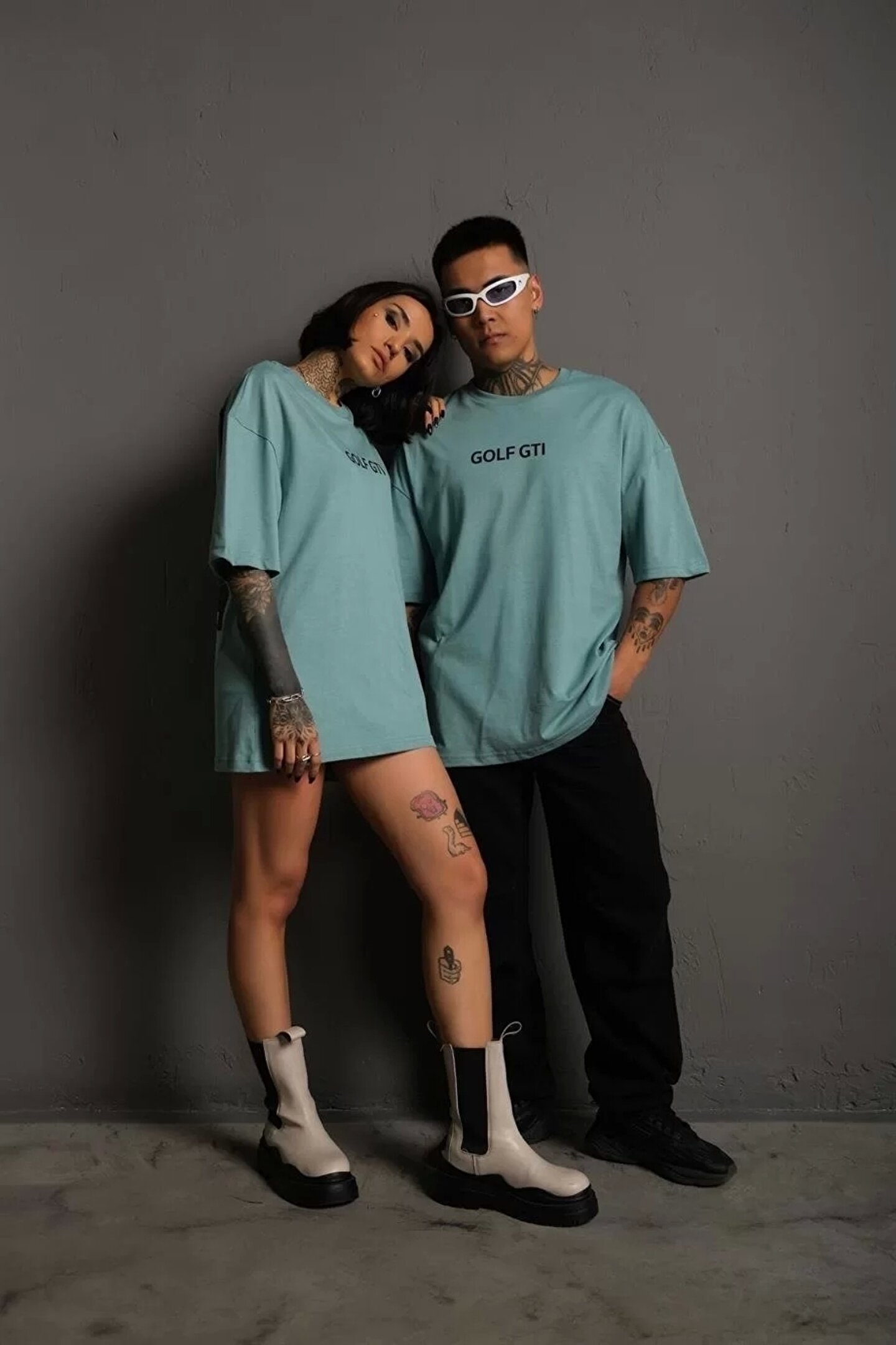 twingold Kadın Sırt Golf Gtı Baskılı Oversize T-shirt - Mint Yeşili