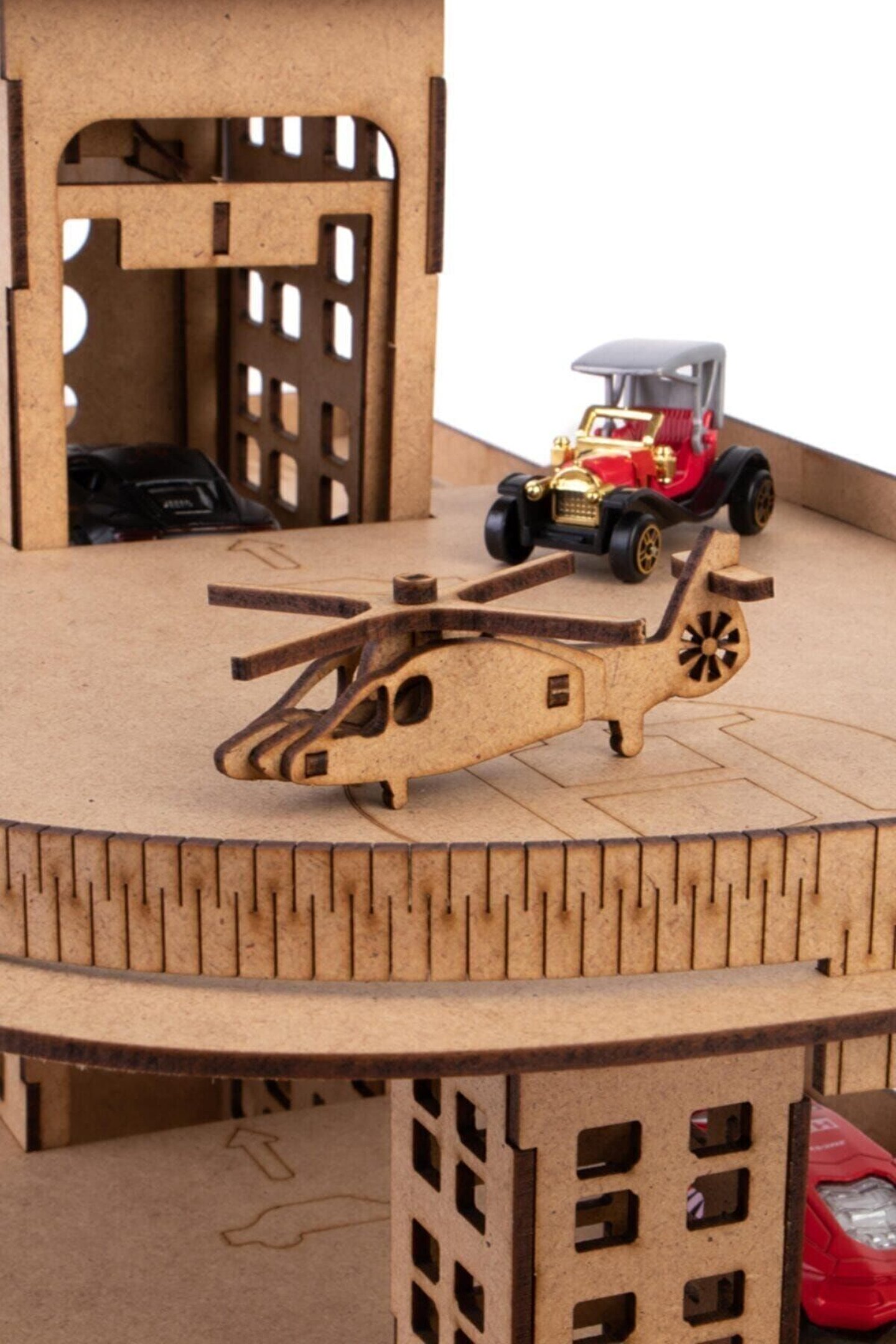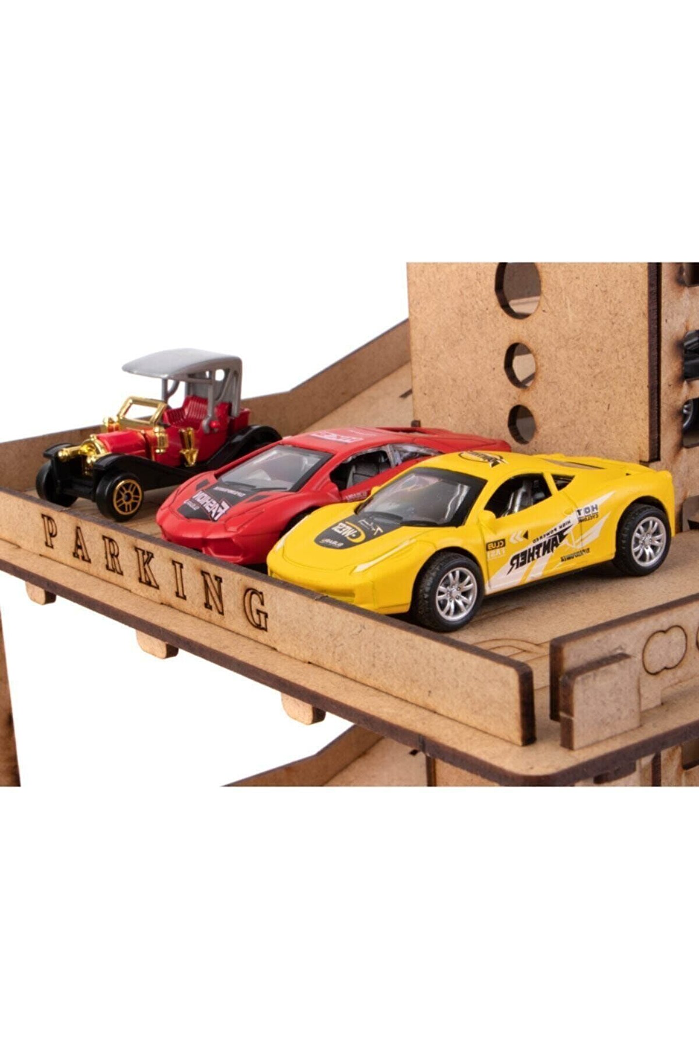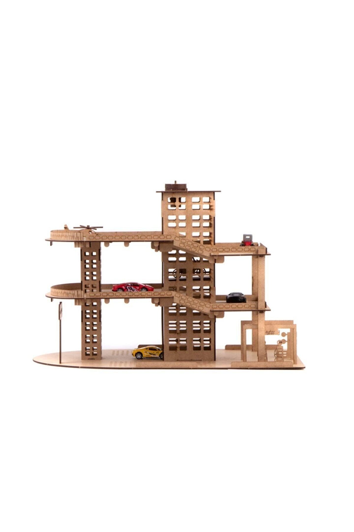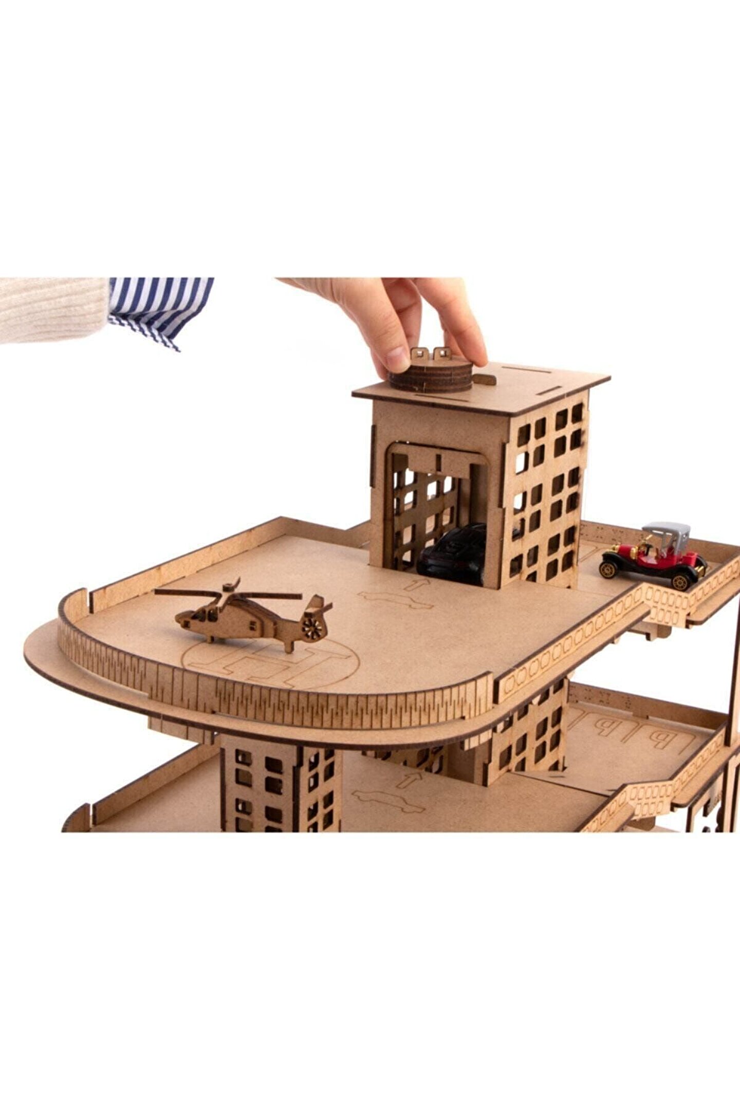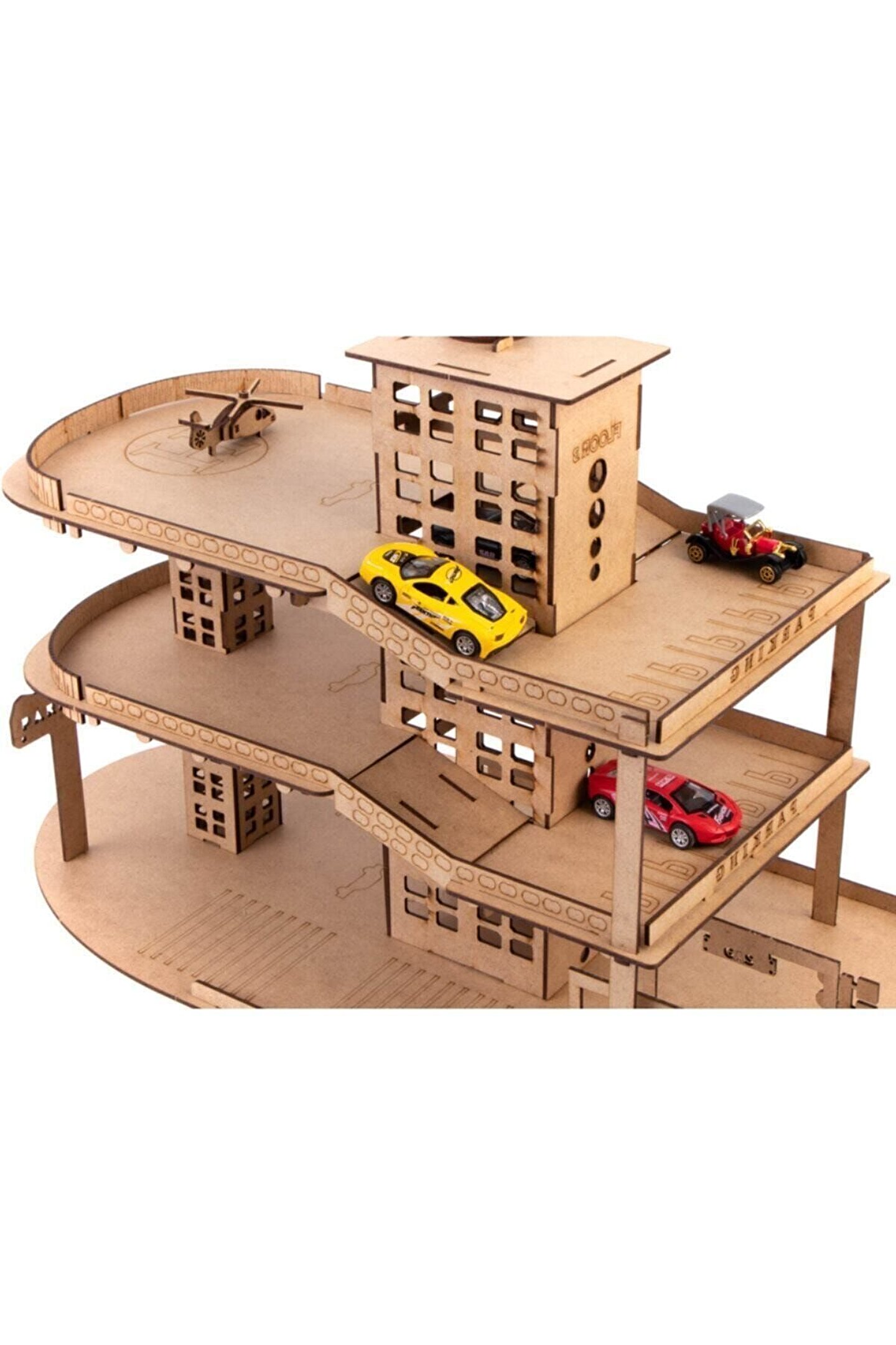 Ahşap Asansörlü Otopark 66 Parça Çocuklarımızın eğlenerek öğrenmeleri için mimari olarak tasarladığımız otopark, çocuklarımızın oyuncak araçlarının düzenini sağlarken, oyun alanlarının merkezine yerleşmeye aday; Çocukların motor kabiliyetlerini, el ve göz koordinasyonlarını geliştirirken basit mekanik bilgilerini ve planlı çalışmalarını da desteklemektedir; Ürünlerimizi, çocuklarımıza sunduğumuz boş bir tuval olarak düşündük; Kendi hayal dünyalarına göre her türlü boya ile boyayabilirler; “Bana kendim yapabilmem için yardım et” mottosuyla tasarladığımız ürünlerimizin, QR kodunu okutarak ulaşabileceğiniz montaj videosu ve kutusunda bulunan kurulum kitapçığı ile kurulumu kolay ve eğlenceli hale dönüşüyor; Ürün kurulumunda yapıştırıcı kullanmaya gerek yoktur; Arzu ederseniz yapıştırabilirsiniz ancak hareketli parçaları lütfen yapıştırmayınız; Yönetmeliğe uygun biçimde tüm testlerden geçen ürünlerimiz hiçbir zehirli kimyasal madde içermez; Ürün Boyutları : 55 x 30 x 40 cm; Yaş Grubu : 3+ Yaş Barkodu: 8682960661228 Item No : 228AY Kutu Ölçüleri : 62,5 x 41,5 x 5,5 cm; Desi Değeri: 5;;