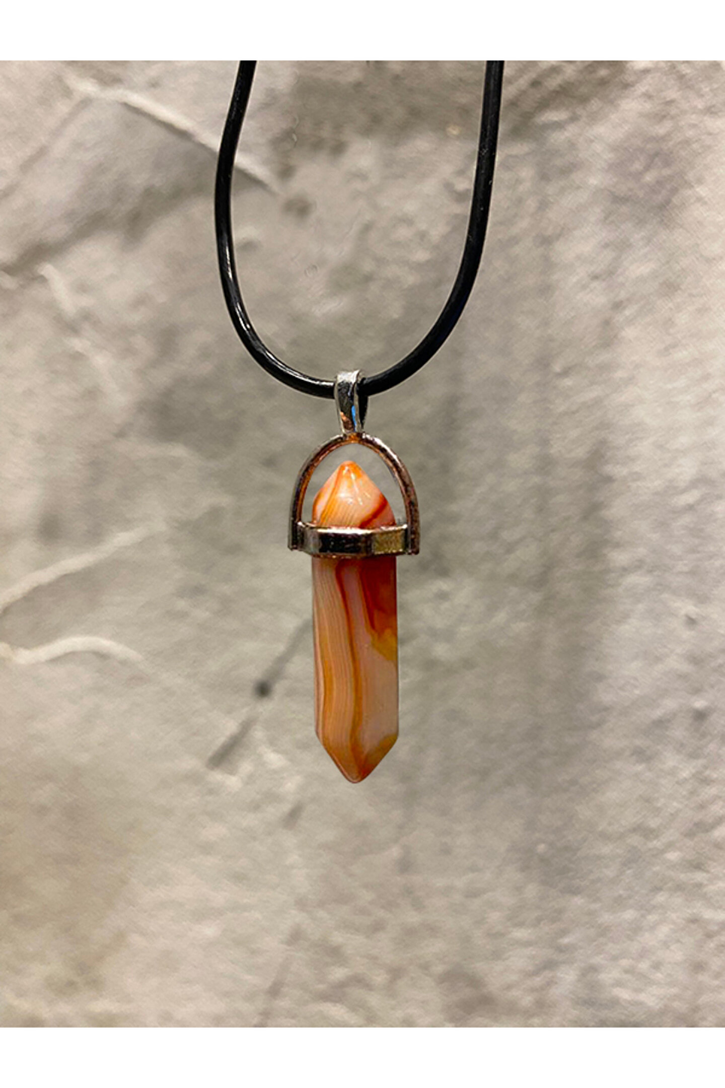 Dogal Taş Apatit Turkuaz Kristali Otantik Desenli Ahşap Boncuk Çelik Kolye