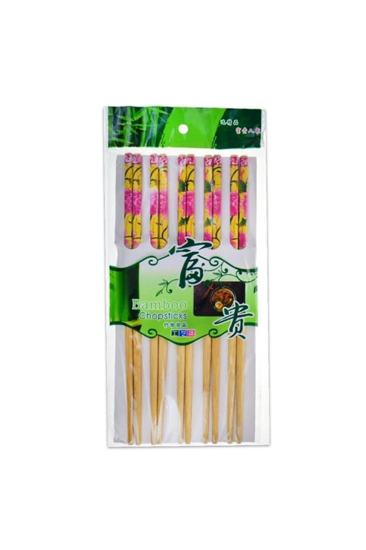 Dmr-2241 Bamboo Chopstick 5 Li Desenli Yıkanabilir Çubuk Suşi Ramen Noodle Yeme Çubuğu