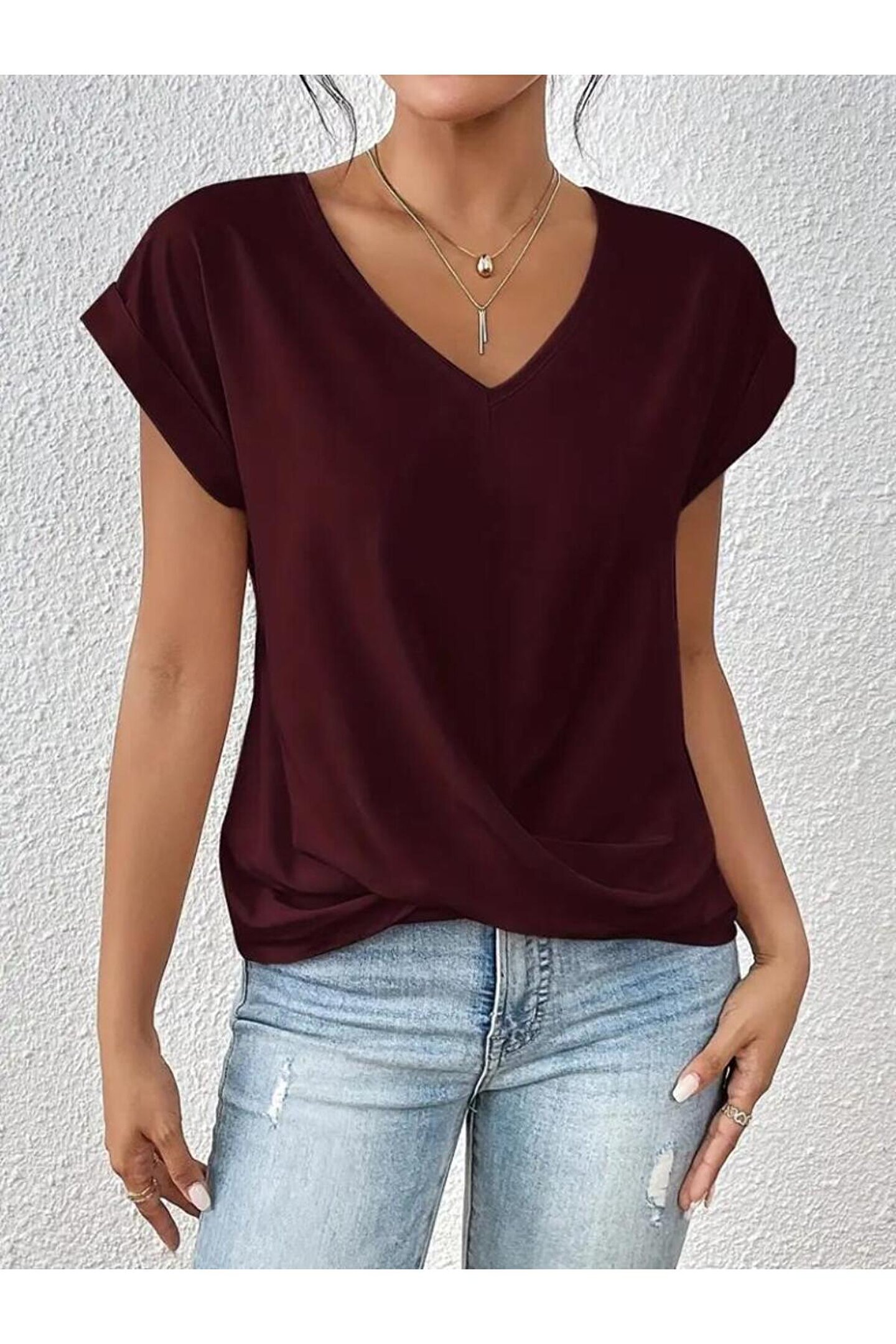 VALENCIOR Kadın Kısa Kollu V Yakalı önden çapraz Geçmeli Detay Viskon Bluz