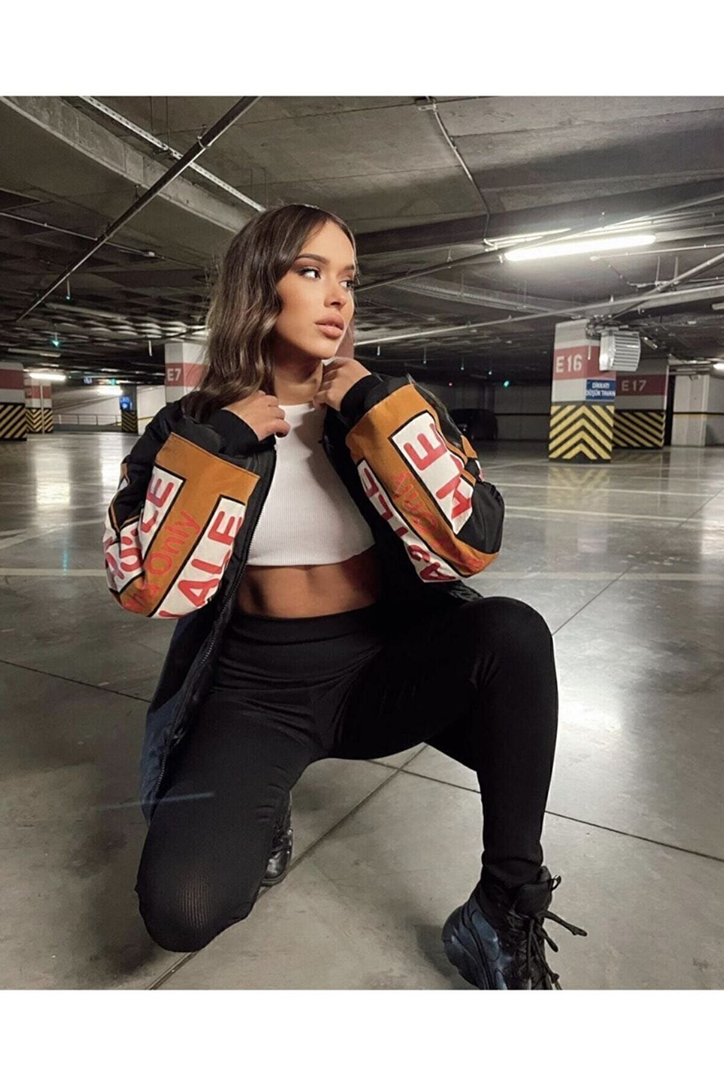 eyesof Siyah Kısa Önü Fermuarlı Bomber Ceket