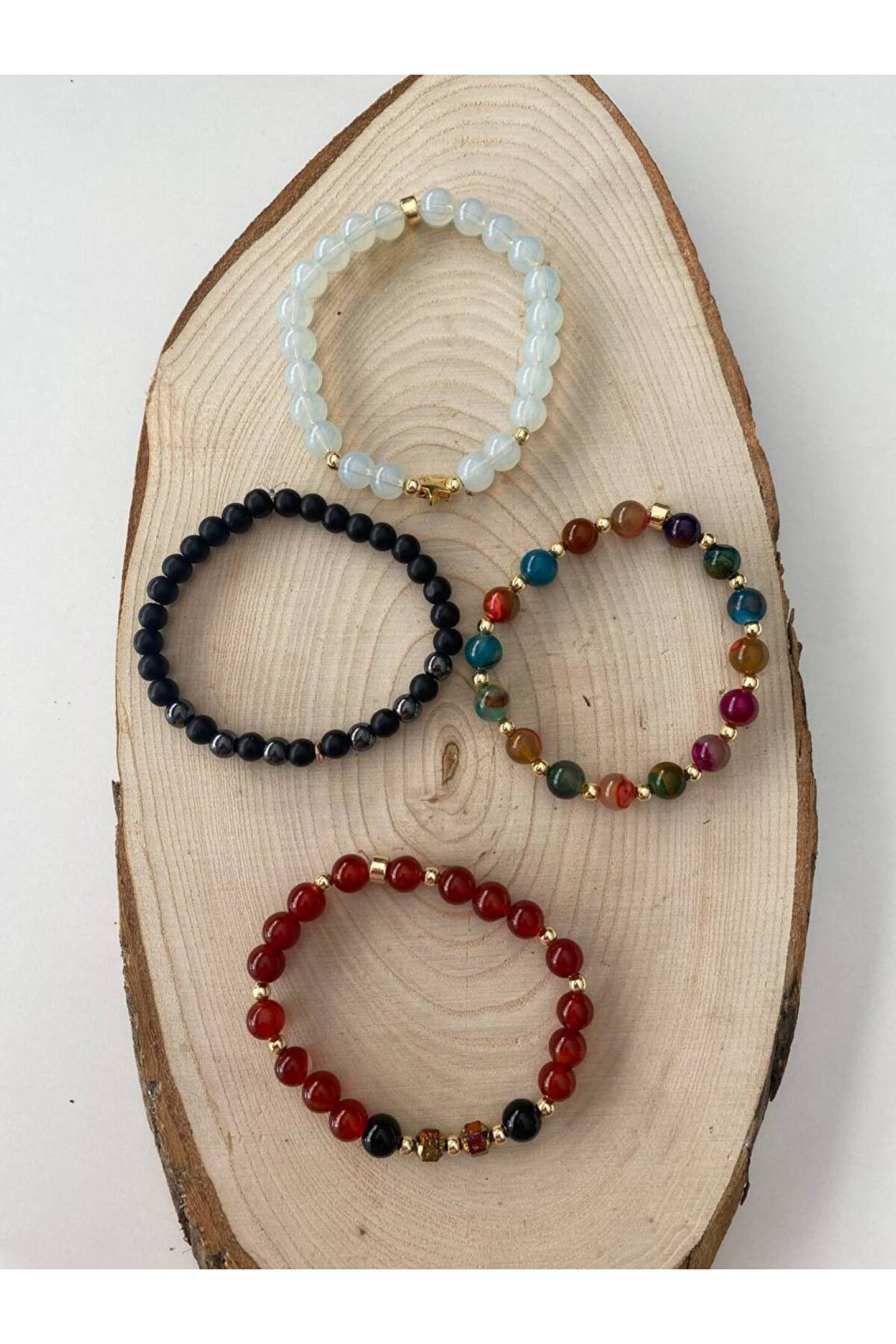 Ay Taşı-Oniks-Akik Taşlarından Doğal Taş 3 lü Bileklik