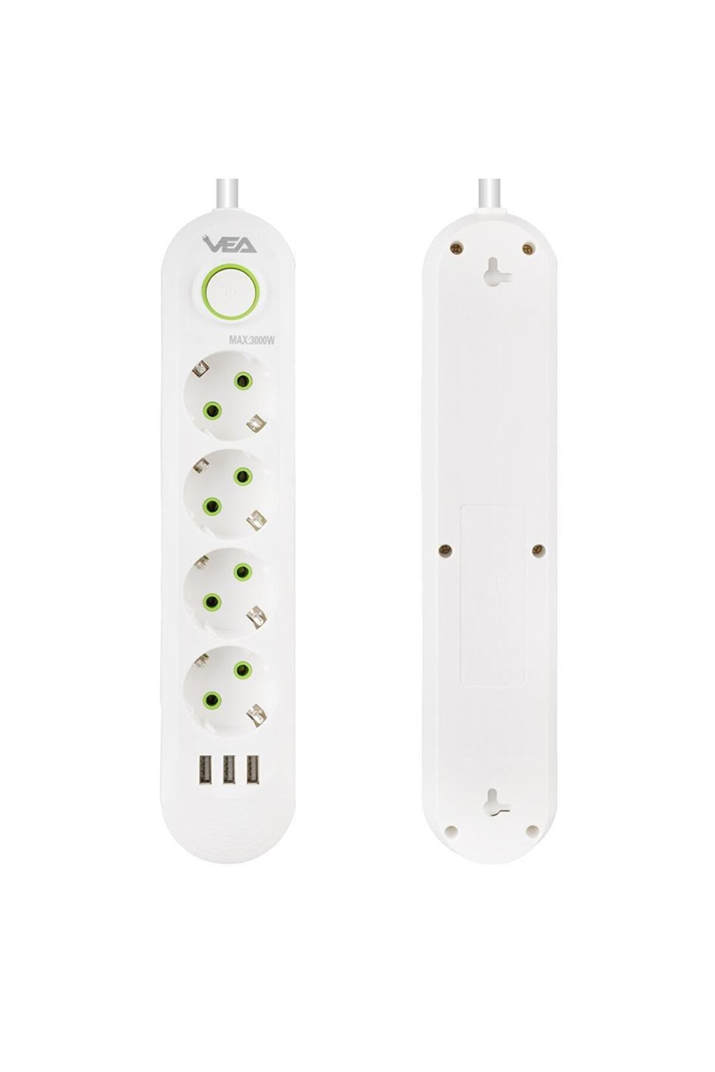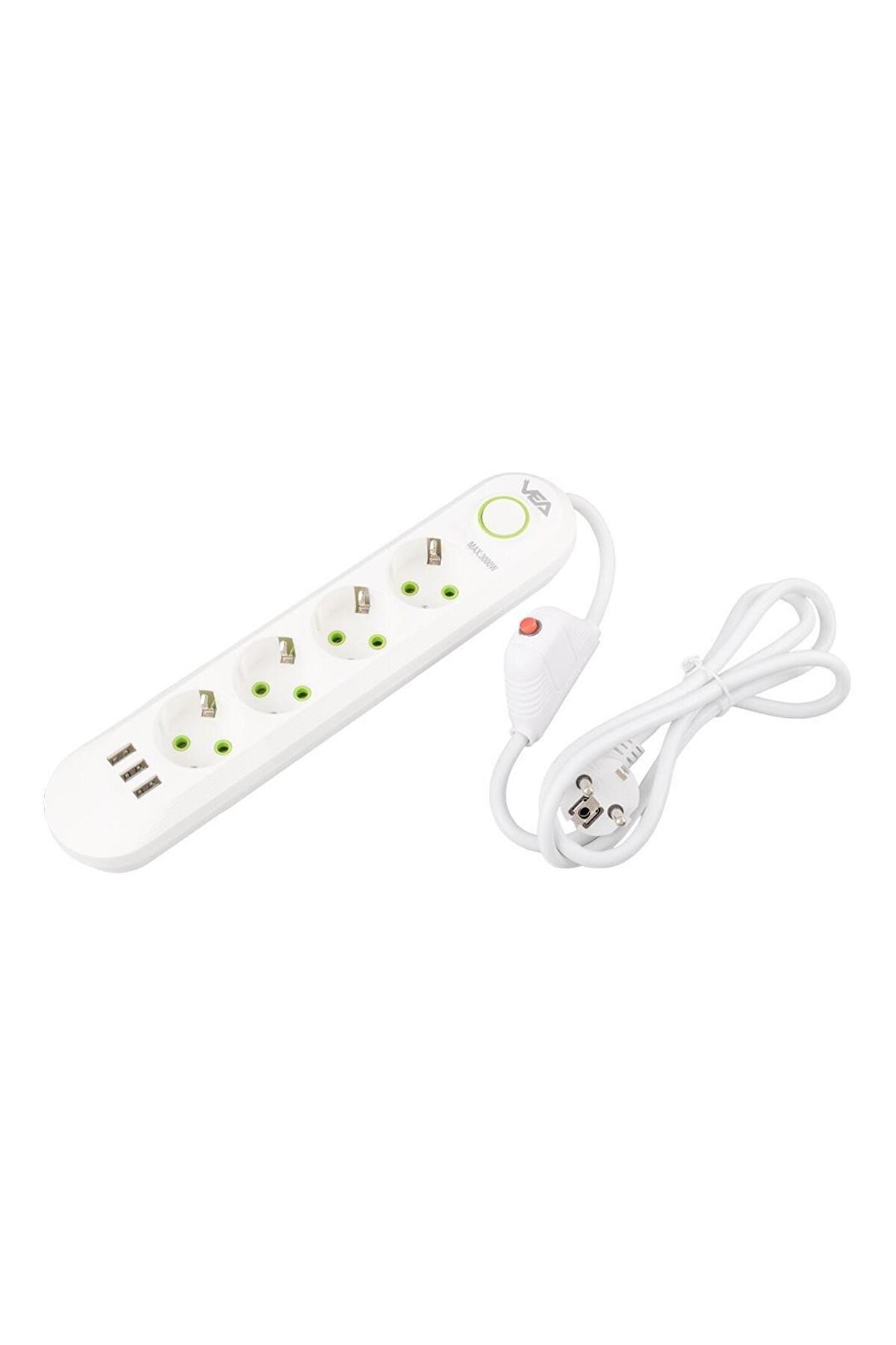 VEA VA-21560 4lü 3 USBli 1.5 Metre Akım Korumalı Priz Beyaz