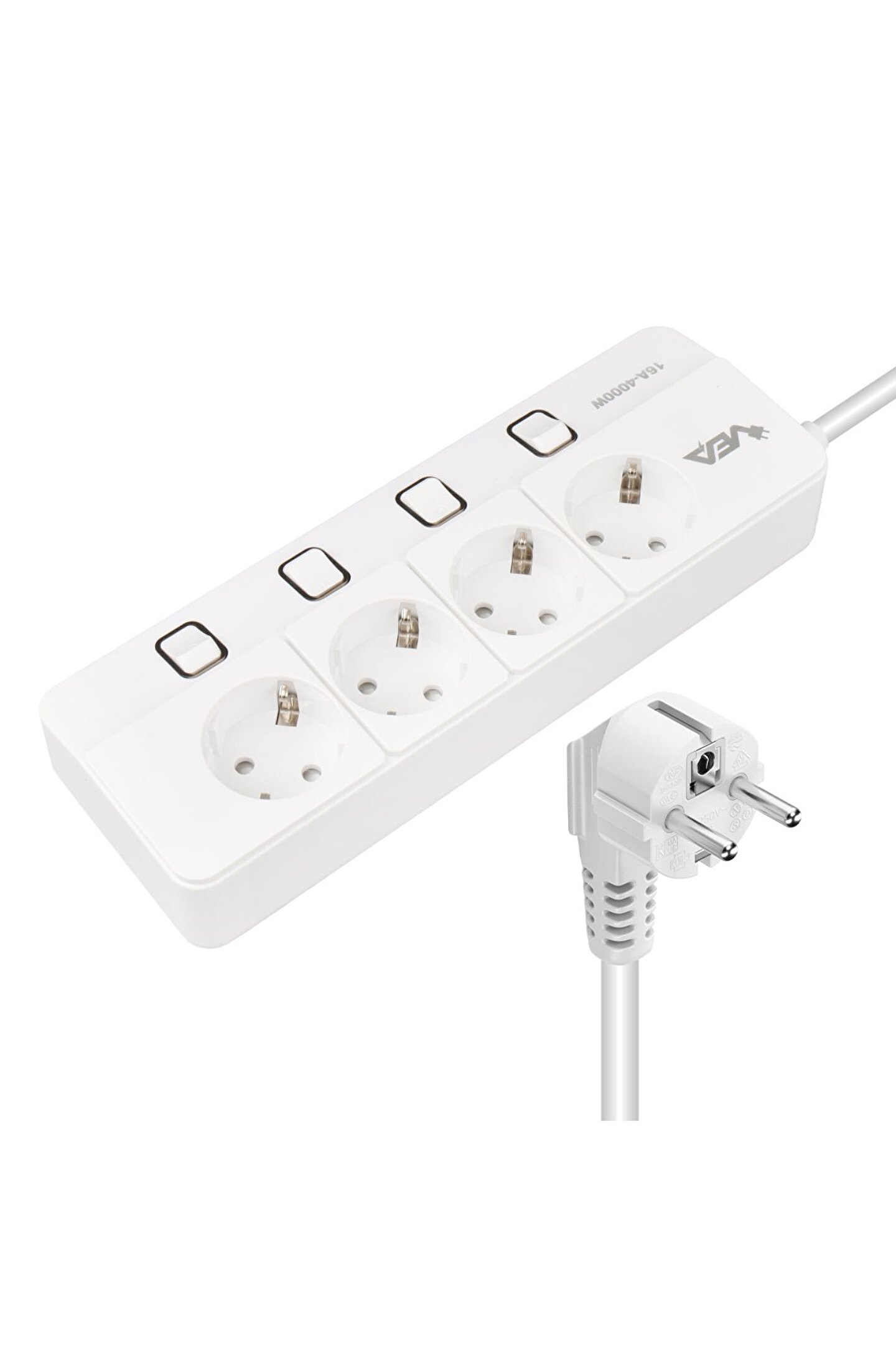 Vea VE-XMAN104 A Class 4'lü Anahtarlı 1.5 Metre Grup Priz Özellikleri Vea VE-XMAN104, güvenliği ve dayanıklılığı bir araya getiren üstün özelliklere sahip bir grup prizdir. Parlak beyaz rengi ve kompakt boyutlarıyla, kullanımı kolay ve estetik bir çözüm sunar. Bu grup priz, 4000 watt gücü ve 16 amper akım kapasitesiyle elektrik ihtiyaçlarınızı karşılamak için ideal bir seçenektir. Ürün Detayları: Akım Koruma Özelliği: Güvenliğinizi ön planda tutan bu grup priz, akım koruma özelliği ile ani akım dalgalanmalarına karşı koruma sağlar. ; Ayrı Anahtarlar ile Kontrol: Her priz girişi için ayrı açma-kapama anahtarı, enerji tasarrufu ve kullanım kolaylığı sağlar. ; Aşırı Isınma Engelleme: İçerdiği aşırı ısınma engelleyici özellik sayesinde, uzun süreli kullanımlarda dahi güvenli bir sunar. ; Dayanıklı Malzeme: Isınmaya karşı dayanıklı malzeme kullanımı, uzun ömürlü ve güvenilir bir ürün sunar. ; Kusursuz Uyumluluk: 3*1.5mm bakır kablo ile donatılan bu grup priz, kusursuz uyumluluk ve güvenilir iletim sağlar. ; Yüksek Kapasiteli Anahtarlar: Her bir priz girişi için ayrı açma-kapama anahtarı, 10.000'den fazla aç-kapa desteği ile günlük kullanıma dayanıklıdır. ; Ürün Boyutu: 240 x 85 x 40 mm boyutlarıyla, kullanımı kolay ve taşınabilir bir yapı sunar. ; İletkenlik Oranları (IACS %): Bakır: %100; Altın: %70; Alüminyum: %61; Pirinç: %28; Nikel Alışımı: %7;