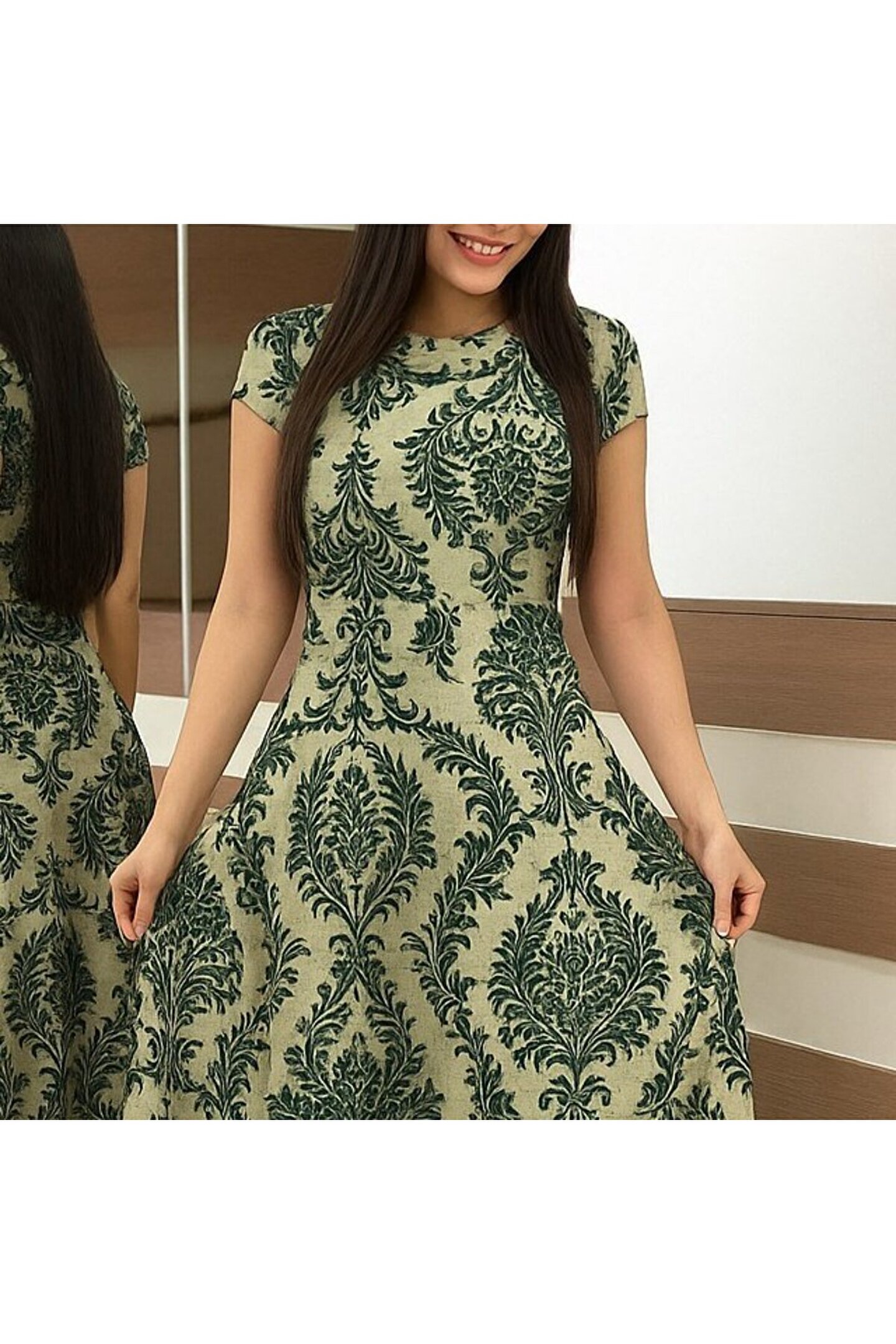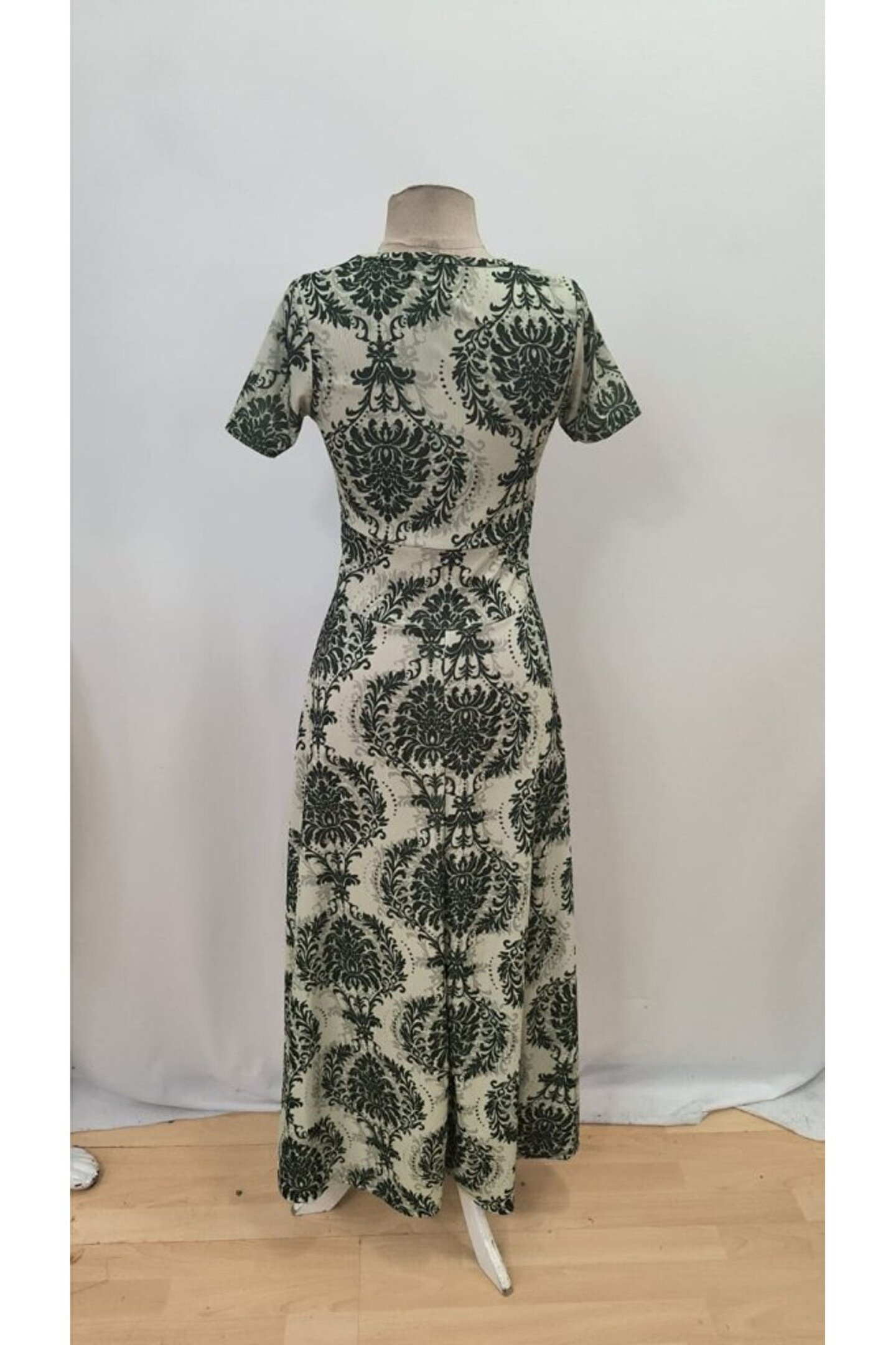 velmorafashion Edolika Kadın Kısa Kollu Bisiklet Yaka Puantiyeli Maksi örme Krep Elbise
