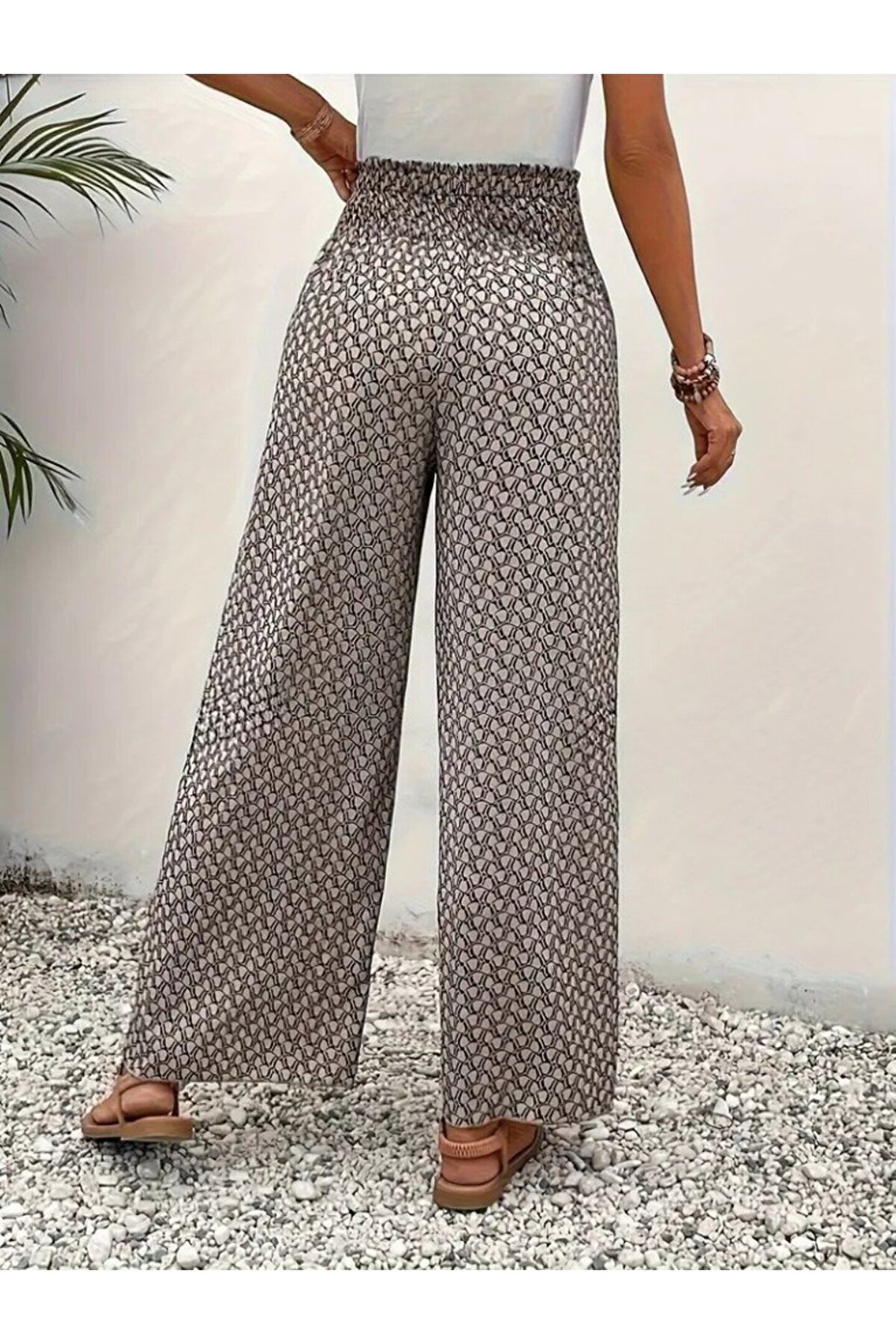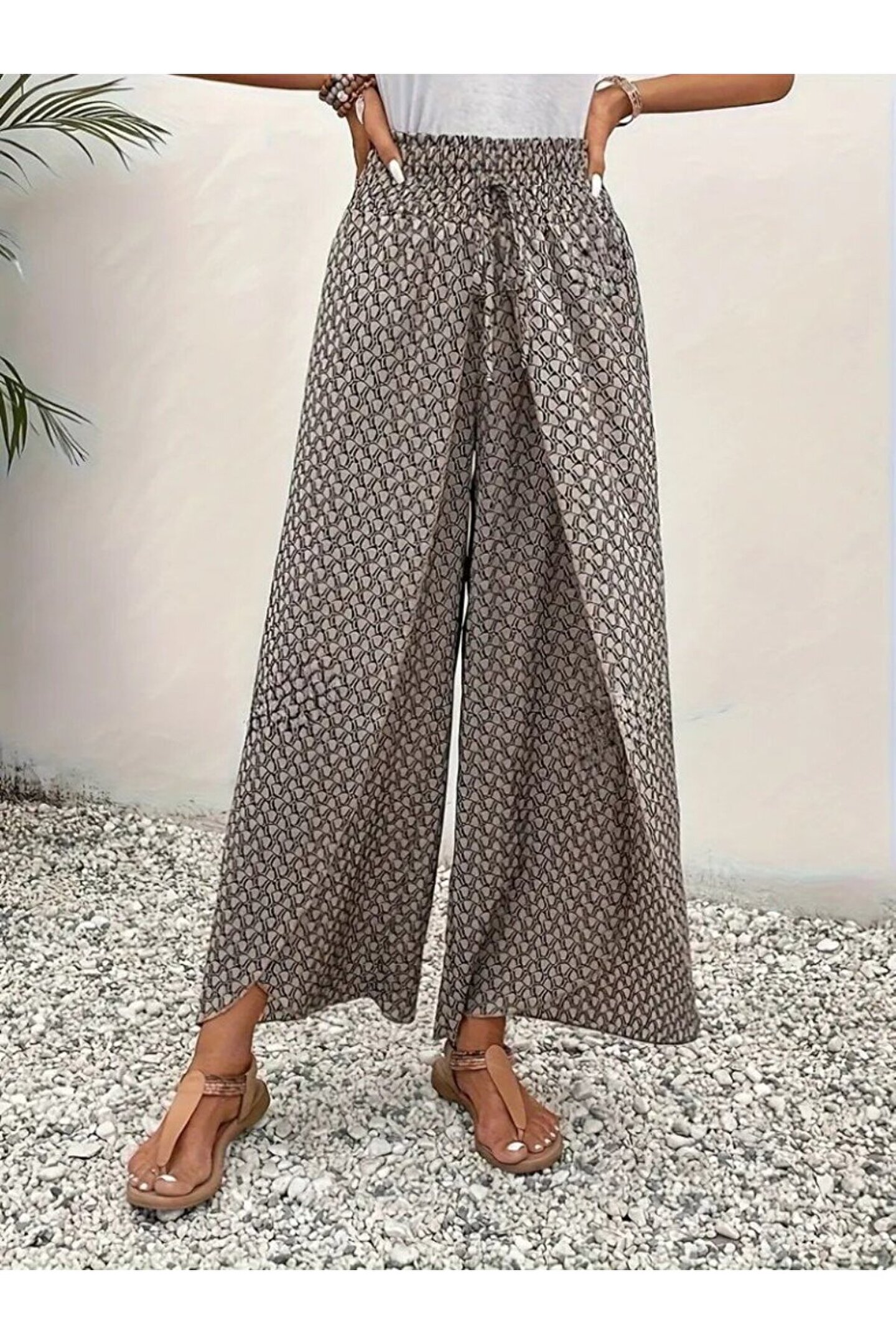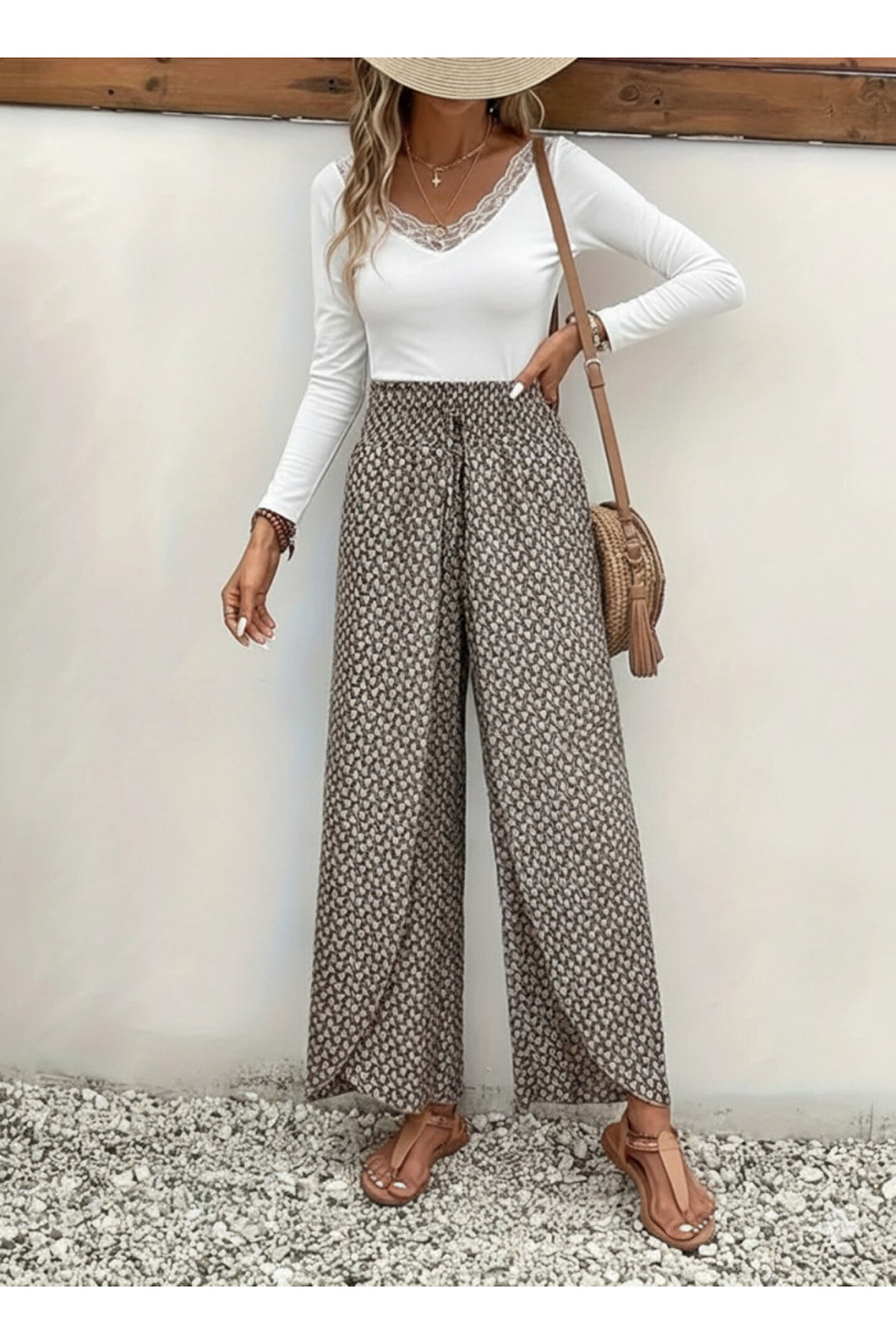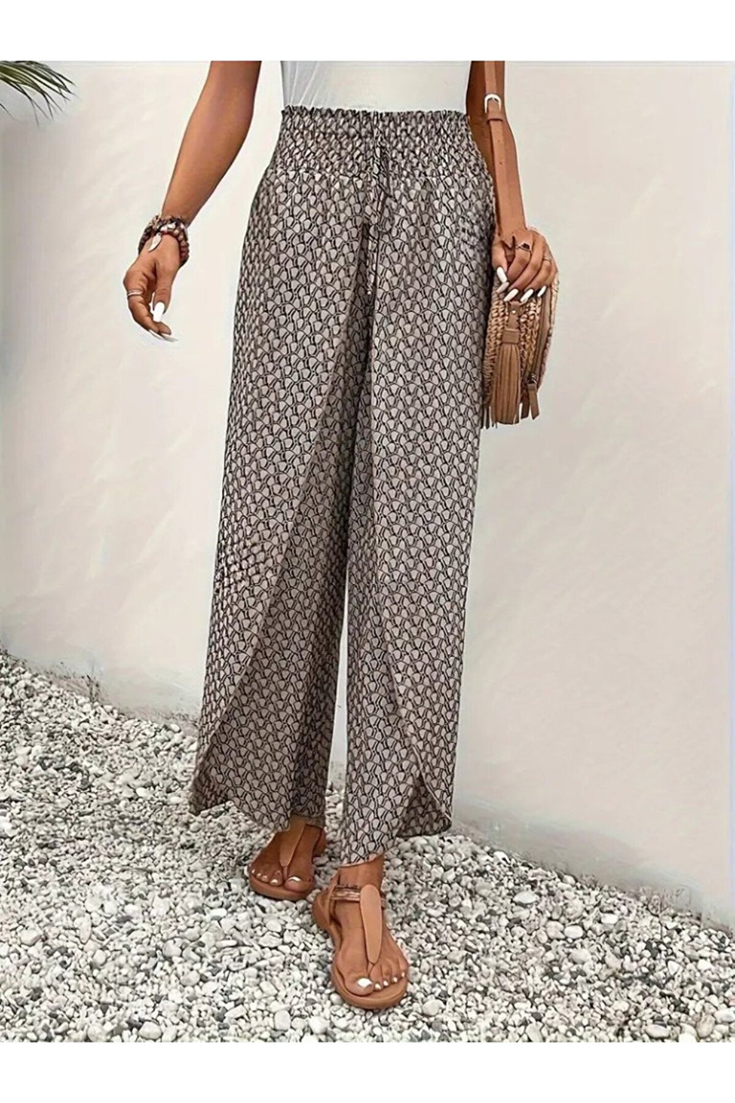 velmorafashion eyesof Kadın Yüksek Bel Lastikli önden Iki Parçalı Desenli Bürümcük Pantolon