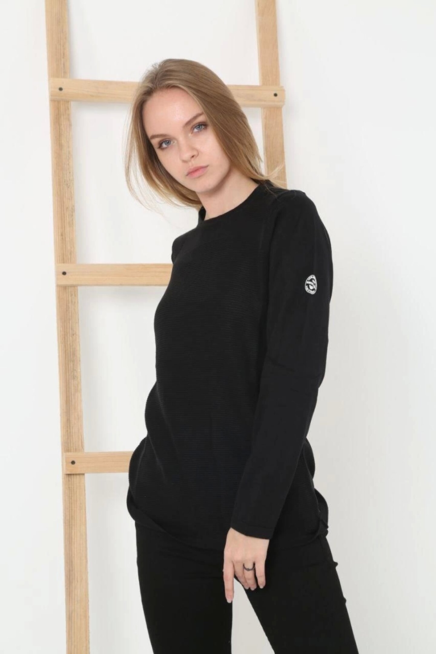 Kadın Biskilet Yaka Kolu Armalı - Siyah