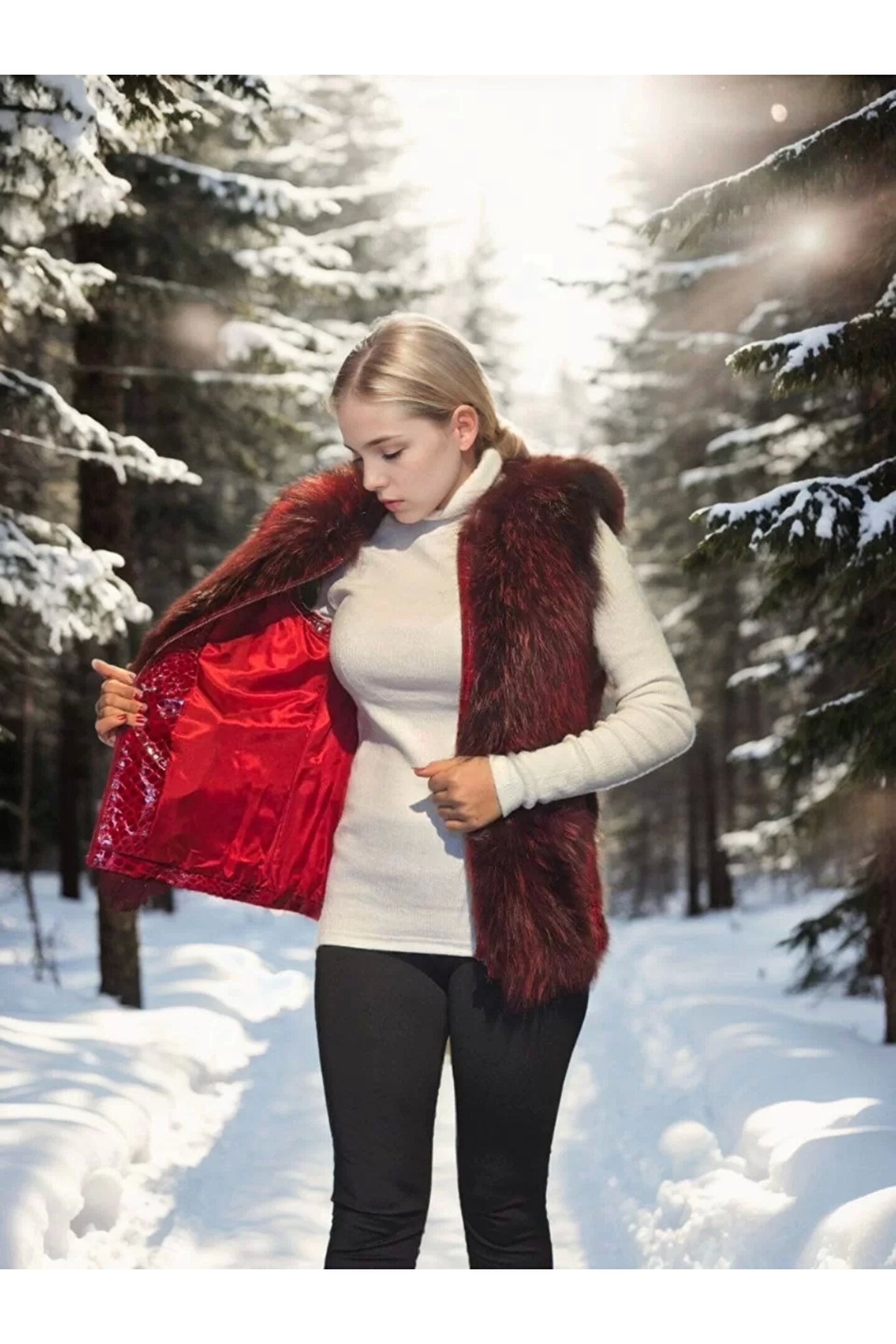 velmorafashion Kadın Kolsuz Fermuarlı Yelek - Kırmızı
