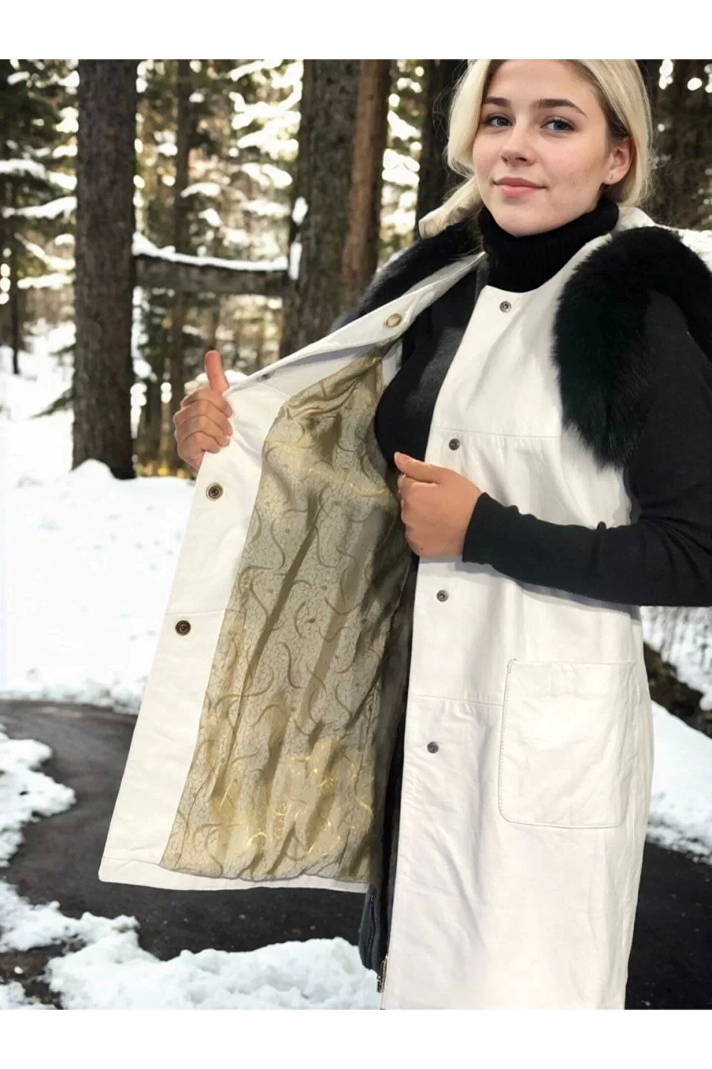 velmorafashion Kadın Kolsuz Hakiki Deri Kürk - Beyaz