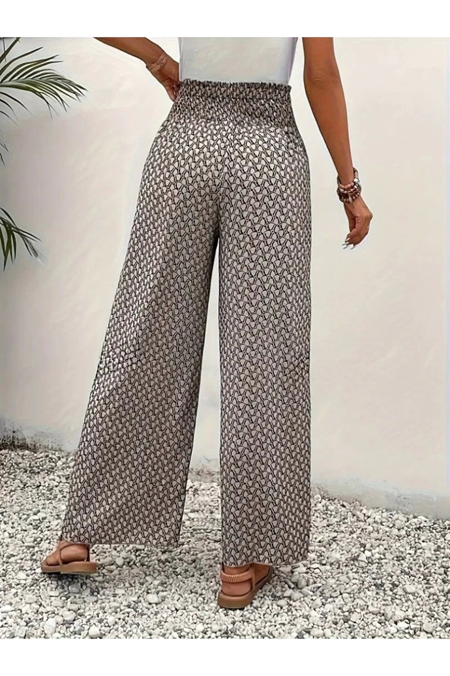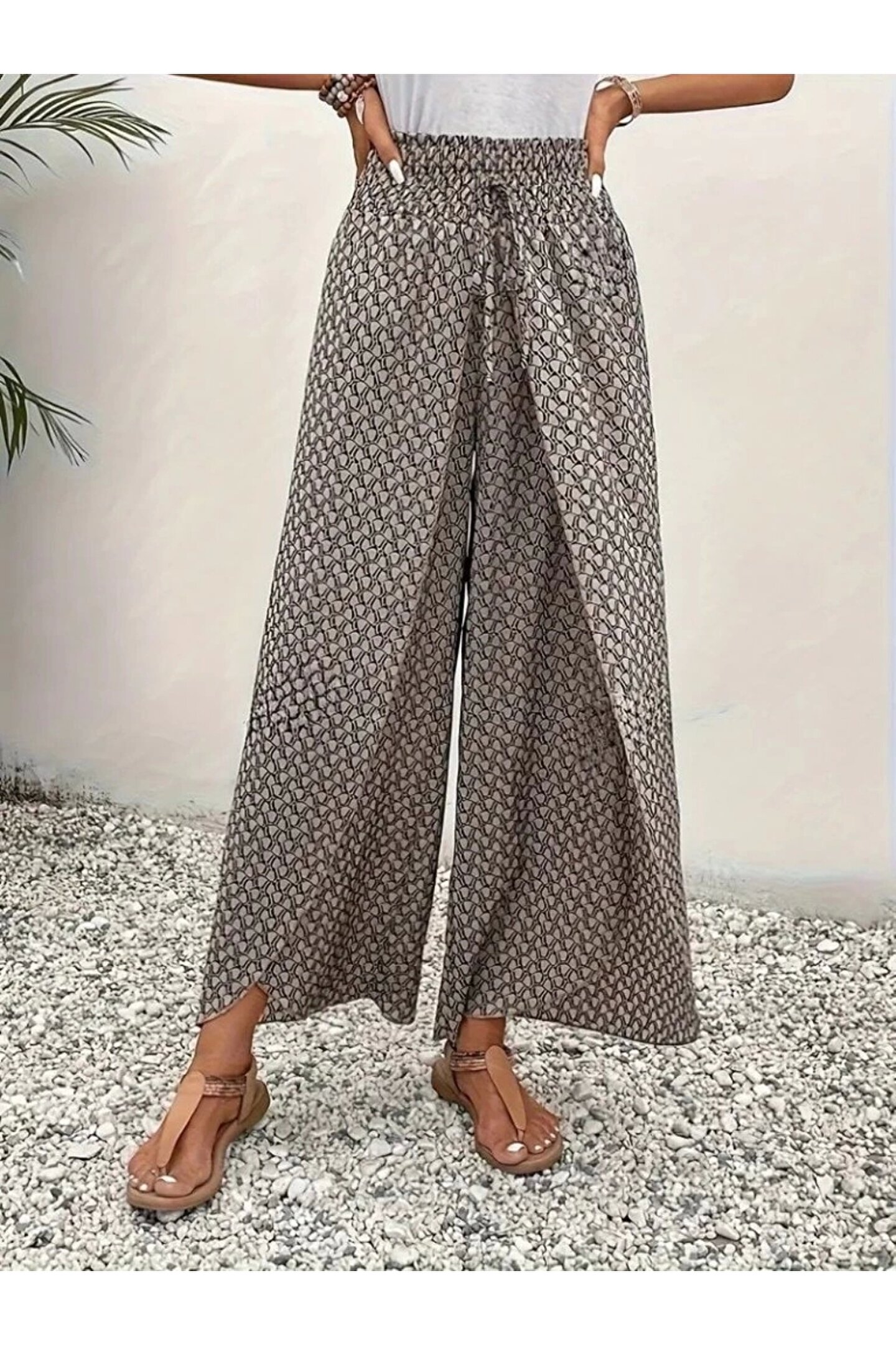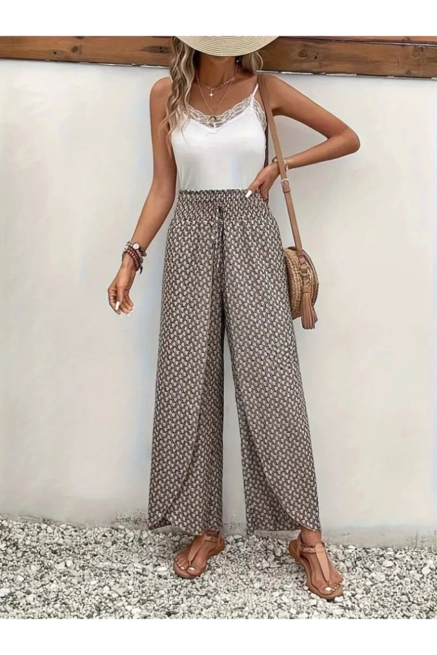 velmorafashion Kadın Yüksek Bel Lastikli önden Iki Parçalı Desenli Bürümcük Pantolon