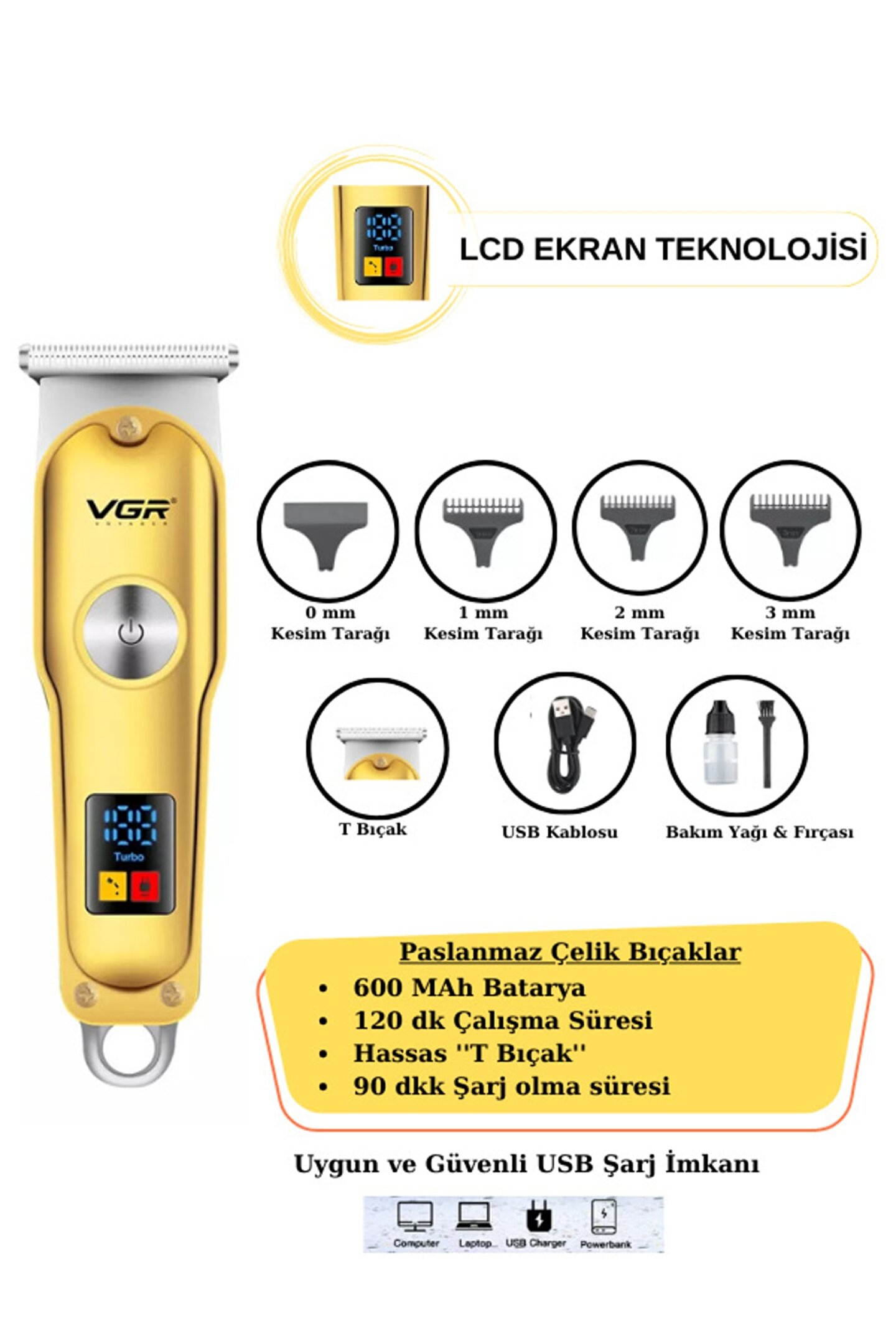 Led Göstergeli Metal Saç Sakal Ense Vücut Tıraş Makinesi Usb Girişli