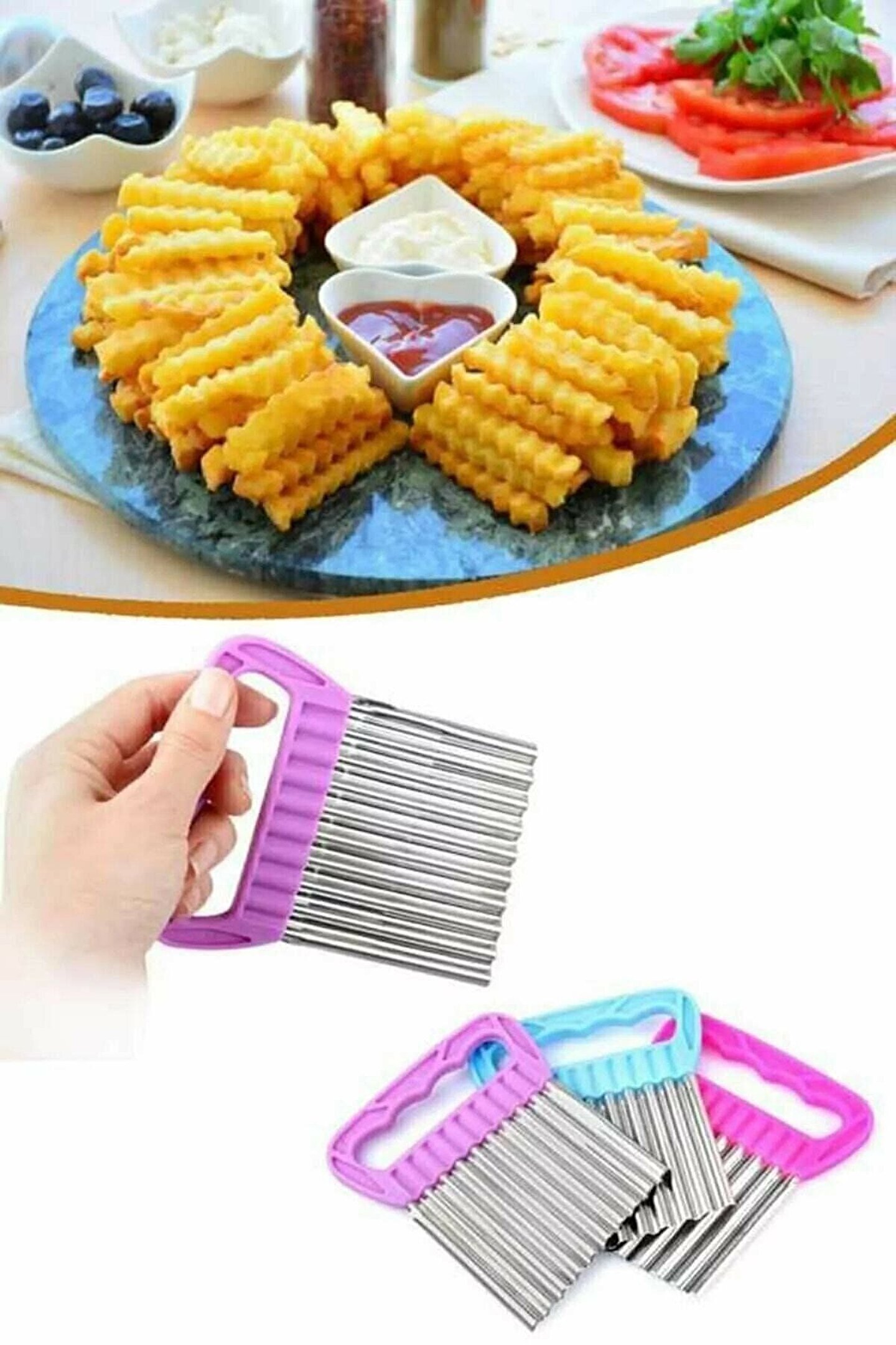 Şekilli Patates, Sebze, Meyve Dilimleyici Pratik Paslanmaz Çelik 2 Adet