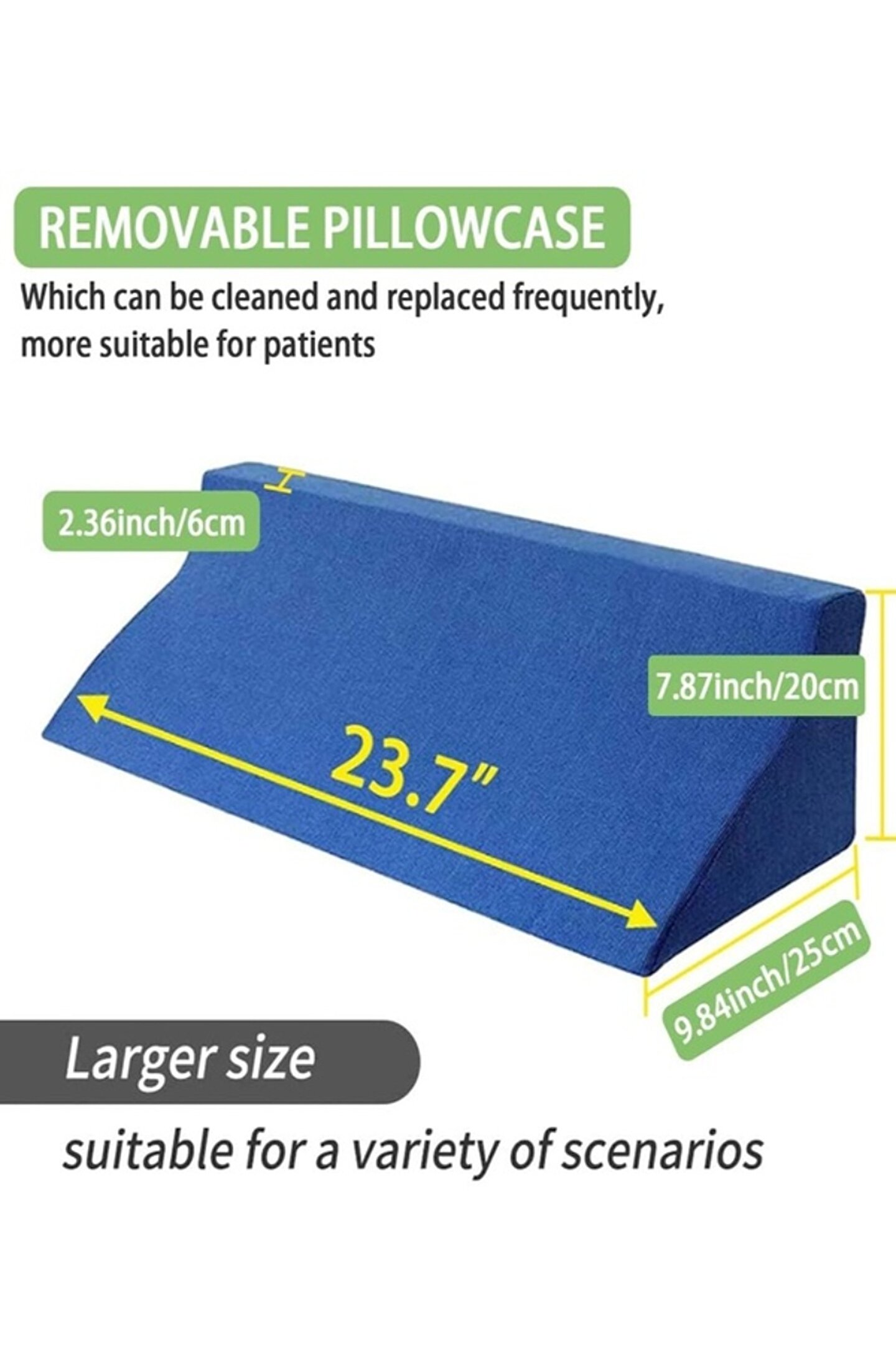 Bu bir evde bakım yardımı tedavi yastığıdır. Hastaların dönmesine, duruşlarını değiştirmesine, bacak pasif kaldırmasına yardımcı olabilir, bacak kan dolaşımını iyileştirmesine yardımcı olabilir; Aynı zamanda hamile kadınların karnını desteklemeye ve hamile kadınların uyuması için iyi bir ortam yaratmaya yardımcı olur. Dik açı boynunuzu rahatlatmaya yardımcı olur, asit reflüsüne, zayıf kan dolaşımına, alerjilere veya sırtüstü pozisyonda nefes almayı engelleyebilecek diğer durumlara iyi gelir.