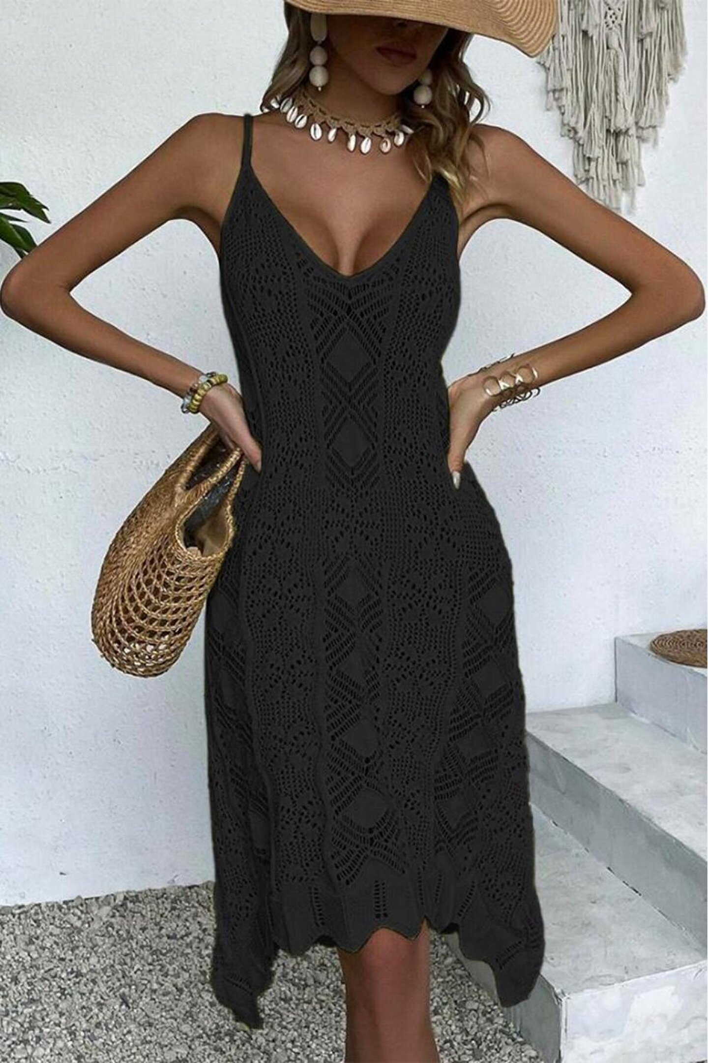 Viyamo Kadın Ince Askılı Triko Elbise