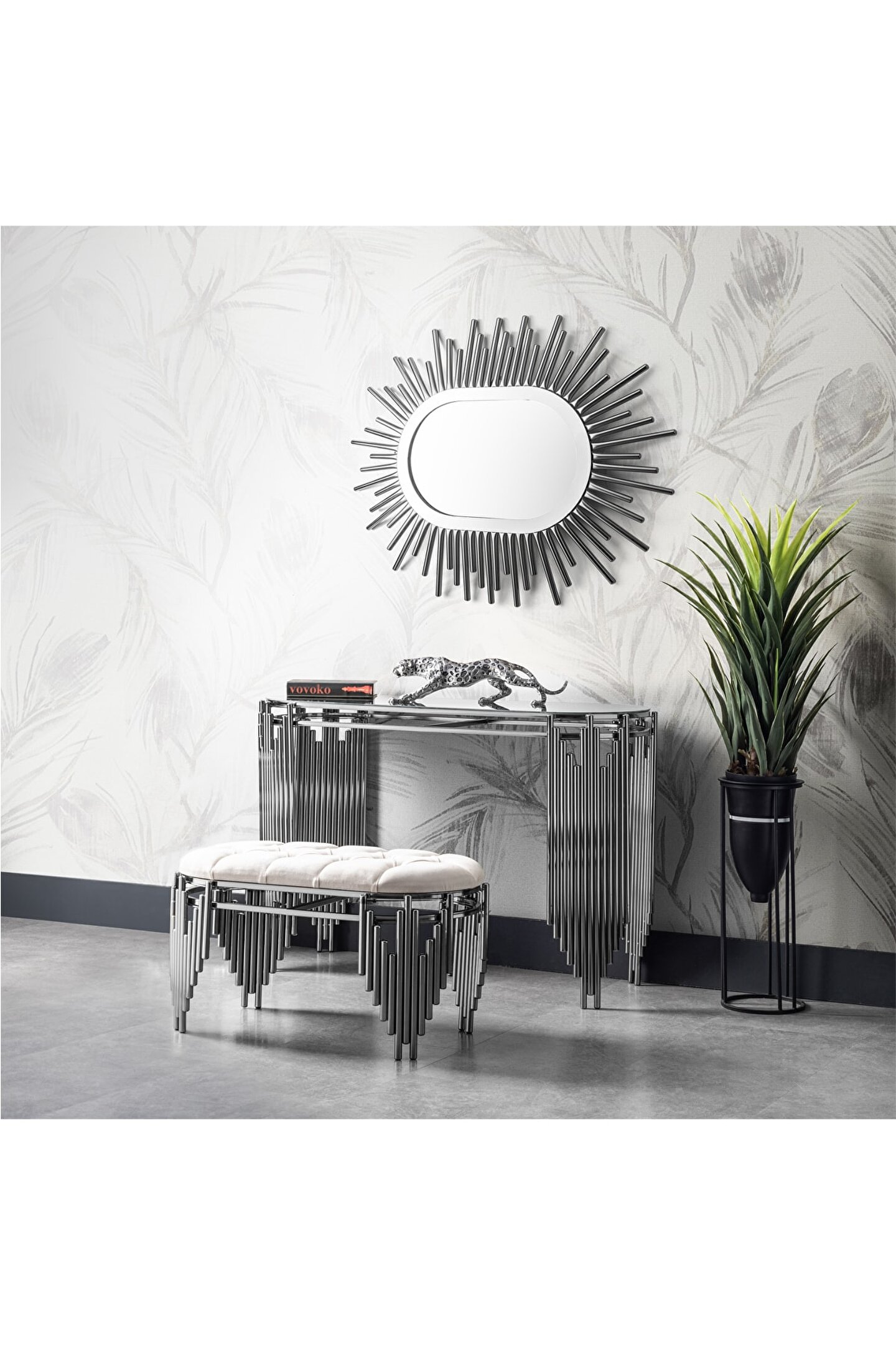 Müşterimizin evinden çekilen görsellerdir. Lüx dresuar takımımız ile evlerinize bizimle birlikte güzellikler katmaya ne dersiniz? ; Ürün içeriği dresuar ve Puftur. Ürünlerimiz 2 yıl garantilidir. ; Aynalı dresuar 1. Kalite gold krom kaplama. ; Ölçüler: Yüzey: 120x45 cm yükseklik:80 cm ; 140CM ÜRÜN STOKLARIMIZDA MEVCUTTUR.; DRESUAR UZUNLUK 120CM YÜKSEKLİK 80 CM GENİŞLİK 42,5 CM. ; Puf 80 cm uzunluk 45 cm genişlik 45 cm yükseklik ölçülerindedir . ; ÜRÜN İÇERİĞİ AYNA DRESUAR VE PUFTUR. ; PUF RENKLERİ KREM SİYAH VE GRİDİR.SATICI İLE İLETİŞİME GEÇİP RENK SEÇENEĞİNİ BELİRTEBİLİRSİNİZ. ; ;