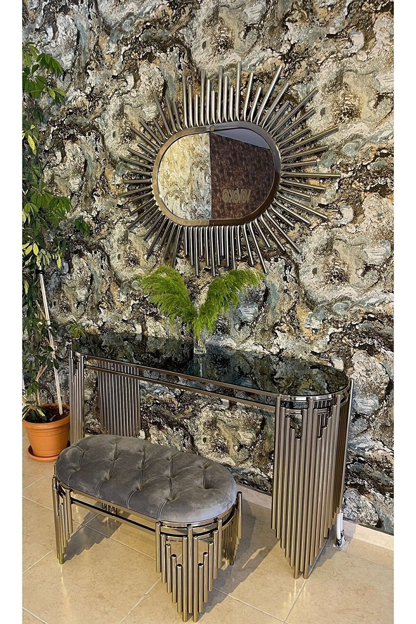 Lüx dresuar takımımız ile evlerinize bizimle birlikte güzellikler katmaya ne dersiniz? ; Ürün içeriği dresuar, duvar aynası, ve Puftur. Ürünlerimiz 2 yıl garantilidir. ; Özel ölçülerde ürün isterseniz satıcıya soru sor bölümünden bizler ile iletişim kurabilirsiniz. ; Kargoya sevk süremiz bu ürün için 3 iş günü içerisindedir. ; Aynalı dresuar 1. Kalite gold krom kaplama. ; Ölçüler: Yüzey: 120x45 cm yükseklik:80 cm ; AYNA GENİŞLİK 90CM UZUNLUK 110CM ; PUF 80 cm UZUNLUK 45 cm GENİŞLİK 45 cm YÜKSEKLİK ÖLÇÜLERİNDEDİR ; DRESUAR UZUNLUK 120CM YÜKSEKLİK 80 CM GENİŞLİK 42,5 CM. ; Üretici firmayız. ÖZEL ÖLÇÜ ÜRETİMLERİMİZ MEVCUTTUR. Kargo esnasında herhangi bir soru ile karşılaşırsanız içersinde bulunan teknik ekip ve müşteri hizmetleri irtibatlarıyla gerekli desteği alabilirsiniz. ;