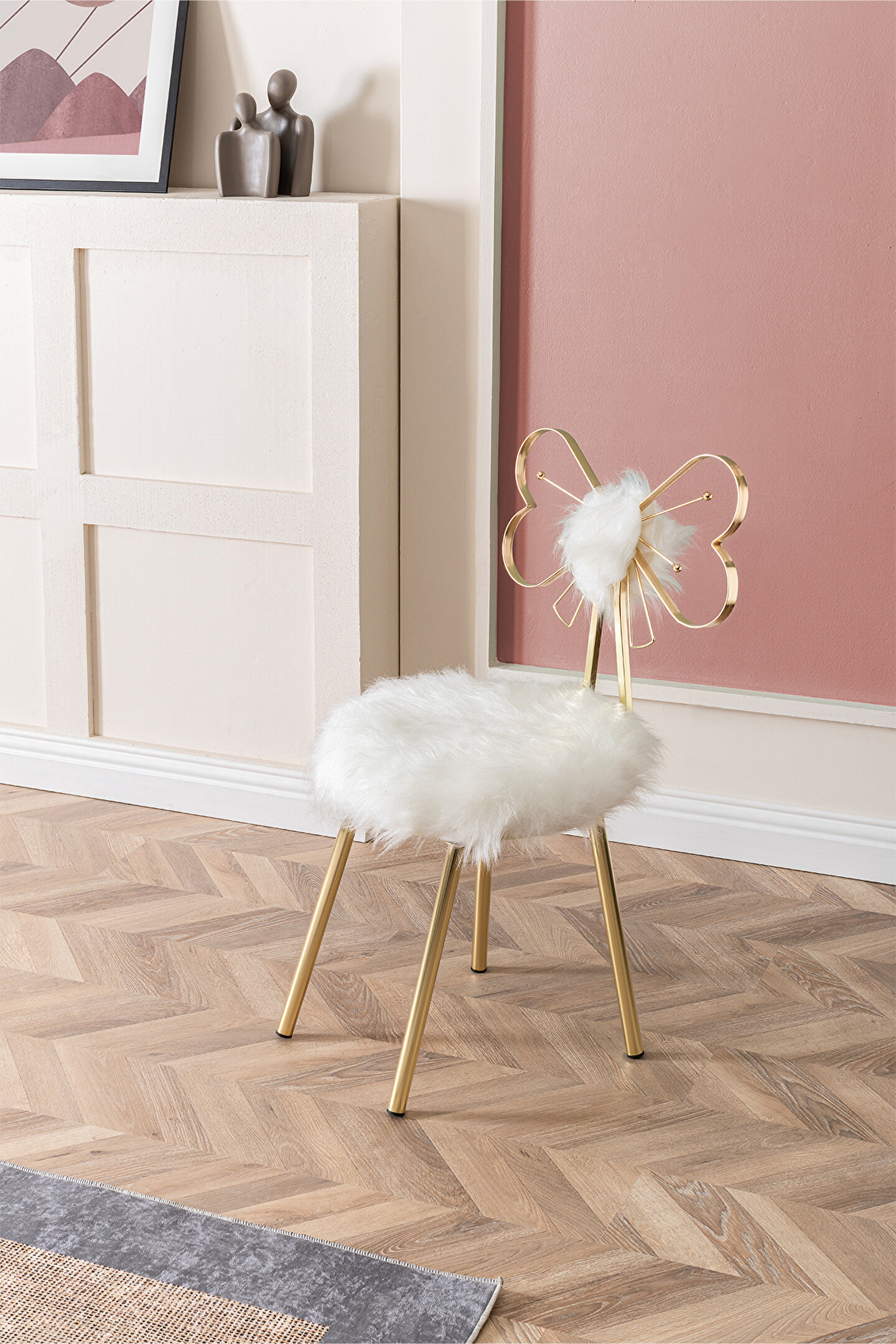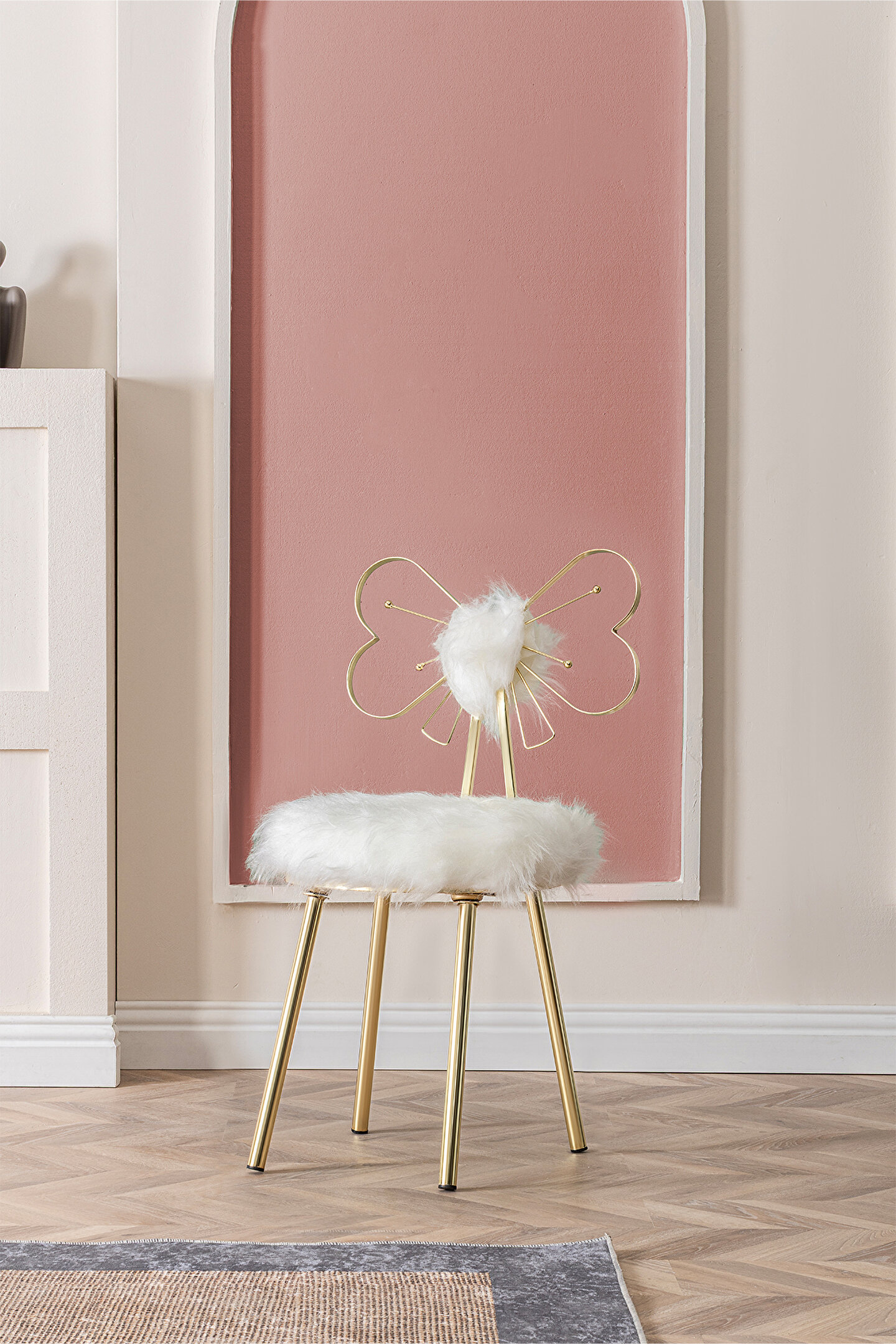 KELEBEK MODEL PELUŞ SANDALYE MAXİMUM 140 KG TAŞIMA KAPASİTESİ VARDIR.; ; ÜRÜN DEMONTE GÖNDERİLMEKTEDİR.; KURULUMUNDA TORNAVİDA KULLANILMASI GEREKMEKTEDİR.; ÜRÜN AÇIK GOLDDUR.; ; KURULUMU ÇOK BASİTTİR.; ; PASLANMA VE KARARMA YAŞANMAZ.; ; LAK KAPLAMA YAPILMAKTADIR.; ; 180 C DERECE DE FIRINLANMIŞTIR.; ; 4 FARKLI RENK SEÇENEĞİMİZ BULUNMAKTADIR.; ; TÜYLERİ PELUŞ OLDUĞU İÇİN DÖKÜLME YAŞANABİLİR.; ; Oturum genişliği 49 cm Oturum yüksekliği 45 cm Sırt yerden yükseklik 89 cm Sırt genişliği 49 cm Ayak uzunluğu 40 cm Oturum minder kalınlığı 8 cm Ayak boru çağı 2.5 cm Boru et kalınlığı 1 mm.; Ürün peluş kumaş olduğu için tüyleri dökülme yapar