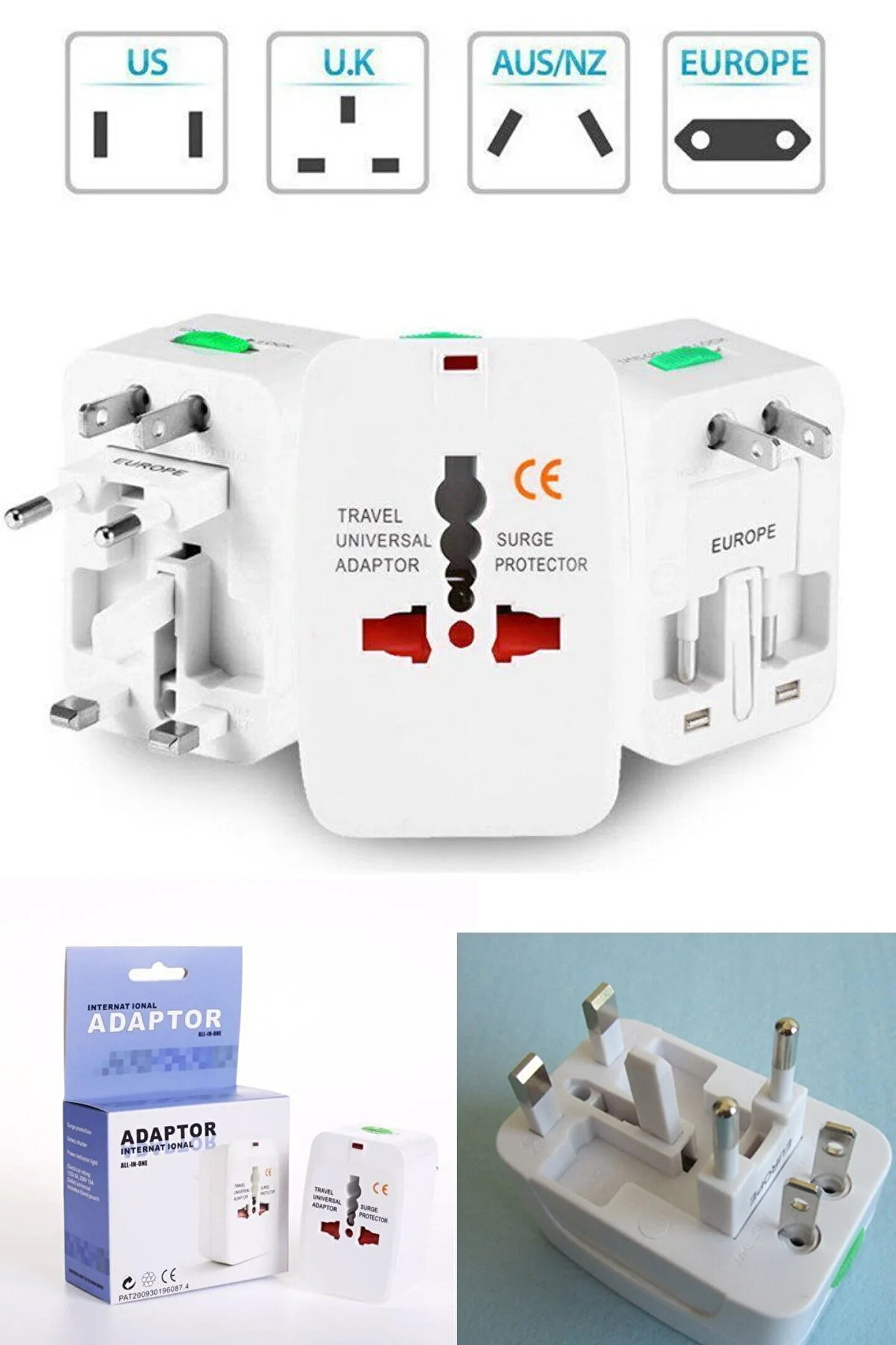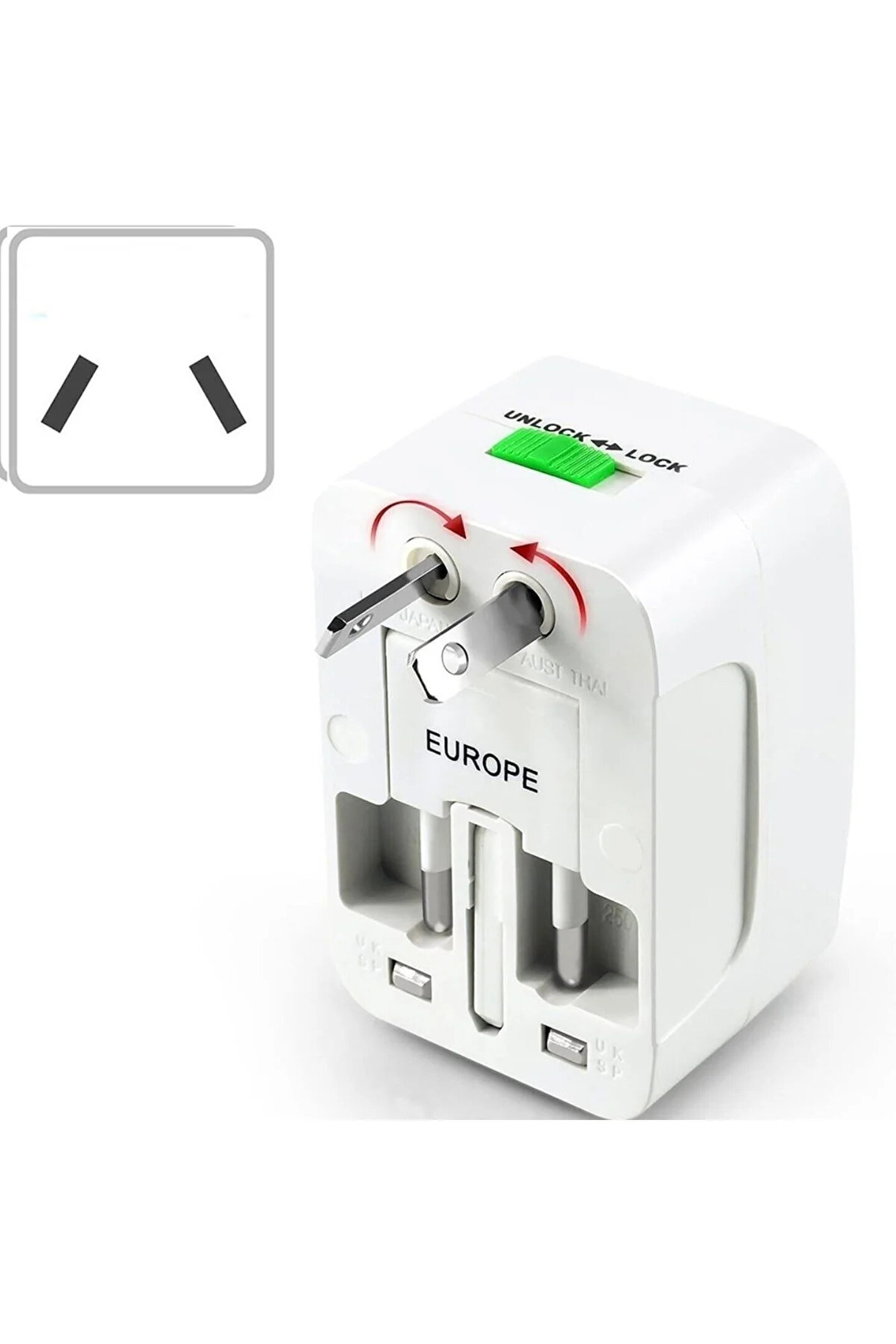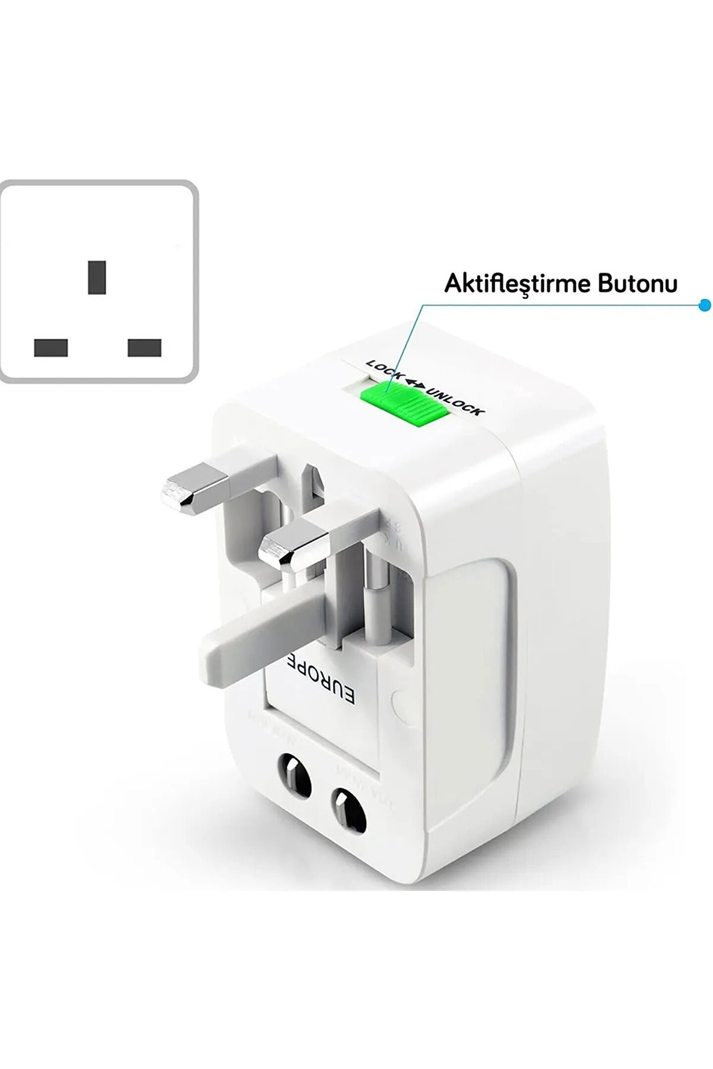 UNİVERSAL ÇOKLU PRİZ ÇEVİRİCİ SEYAHATADAPTÖRÜ ; Yaklaşık 150 ülkede size eşlik eder. ; Cep telefonu TabletLaptop… ; 3 Amper ; Güç gösterge ışığı ; Aşırı akım koruyucusu ; Boyutlar (Y x G x D): 50Mm x40Mm x 73Mm ; Ağırlık: 90 Gr. ; Uyumluluk: UK/EU/USA/AUST ; 100- 250Volt ; Beyaz ; Avrupa, Amerika, İngiltere,Japonya, Çin, Asya, Güney Amerika veya dünyanın başka bir yerindekullanabilirsiniz! ; Çocuk koruyuculu tasarımıçocukları elektrik çarpmasını önler. ; Elektronik cihazlarınızıkoruyacak yüksek akım ve dalgalanma koruması bulunmaktadır. ; *** ; ***Not: Yapısı gereği bu cihazları biraz sert kullananız gerekir. ;