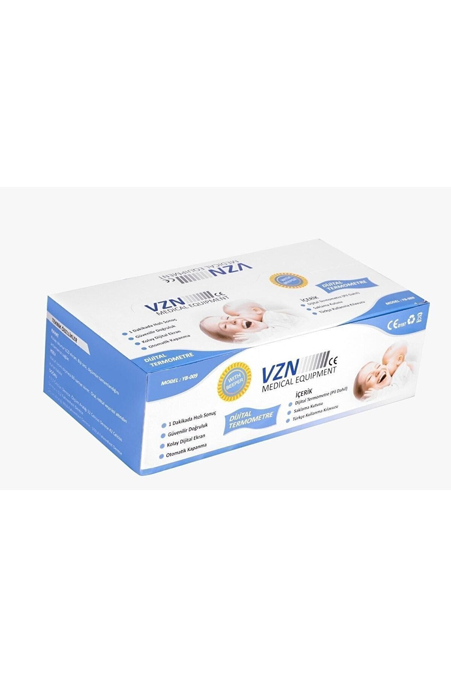 Vzn Dijital Termometre (Ateş Ölçer) ; Ürün Özellikleri: ; 1 Dakikada Doğru Ölçüm Otomatik Kapanma Fonksiyonu ; CE Onaylı ; Taşıma Çantası Hediyeli ; Ölçüm Hafızası ;