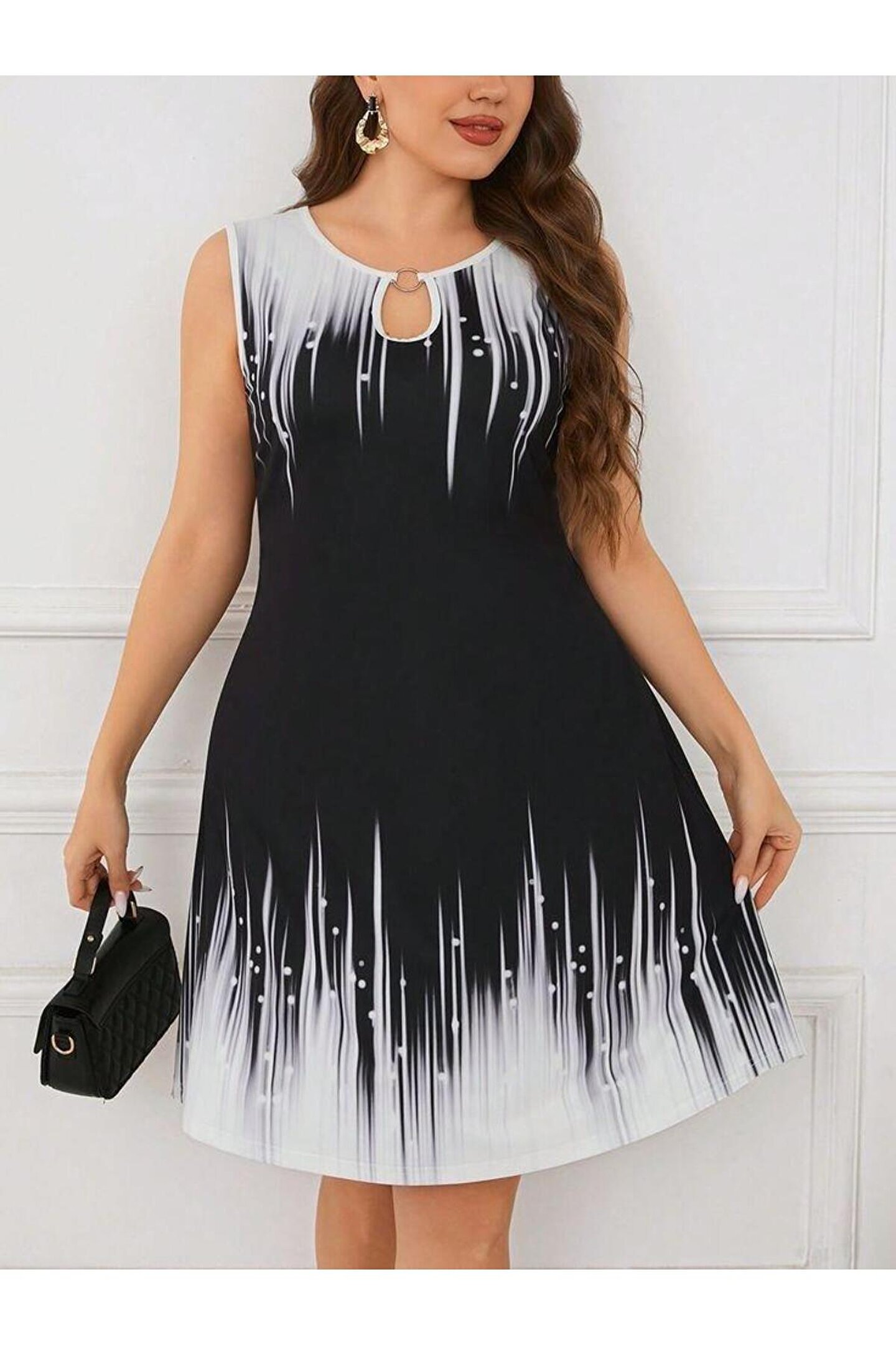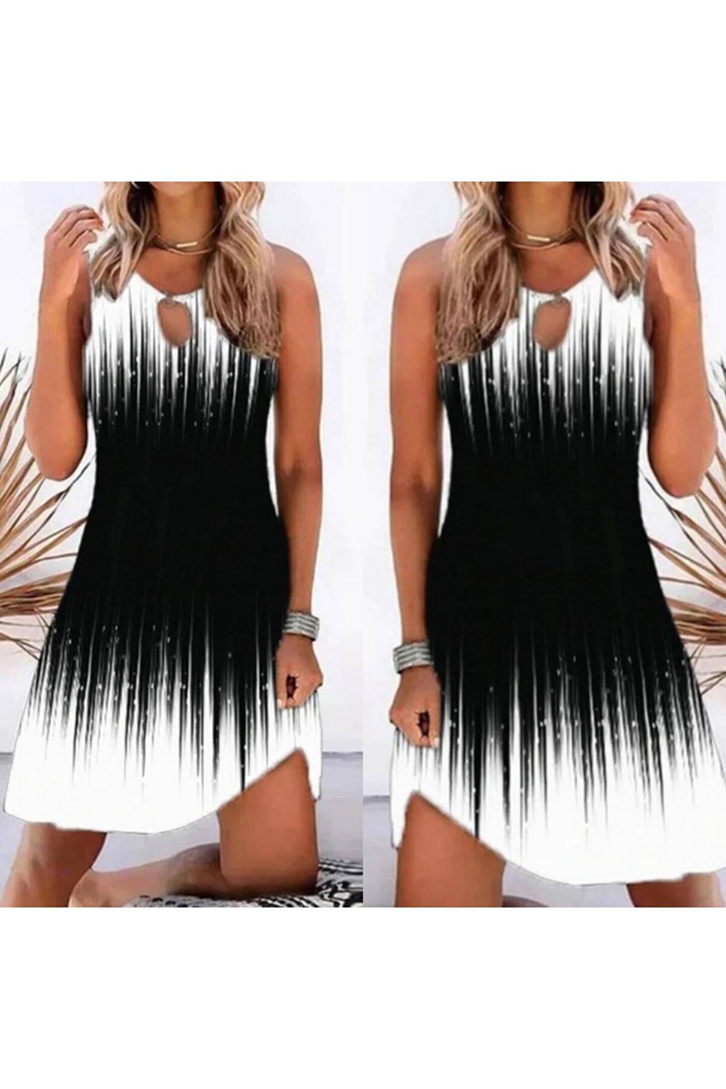 Kadın Yaka Damla Dekolteli Siyah Beyaz Desenli Dalgıç Elbise
