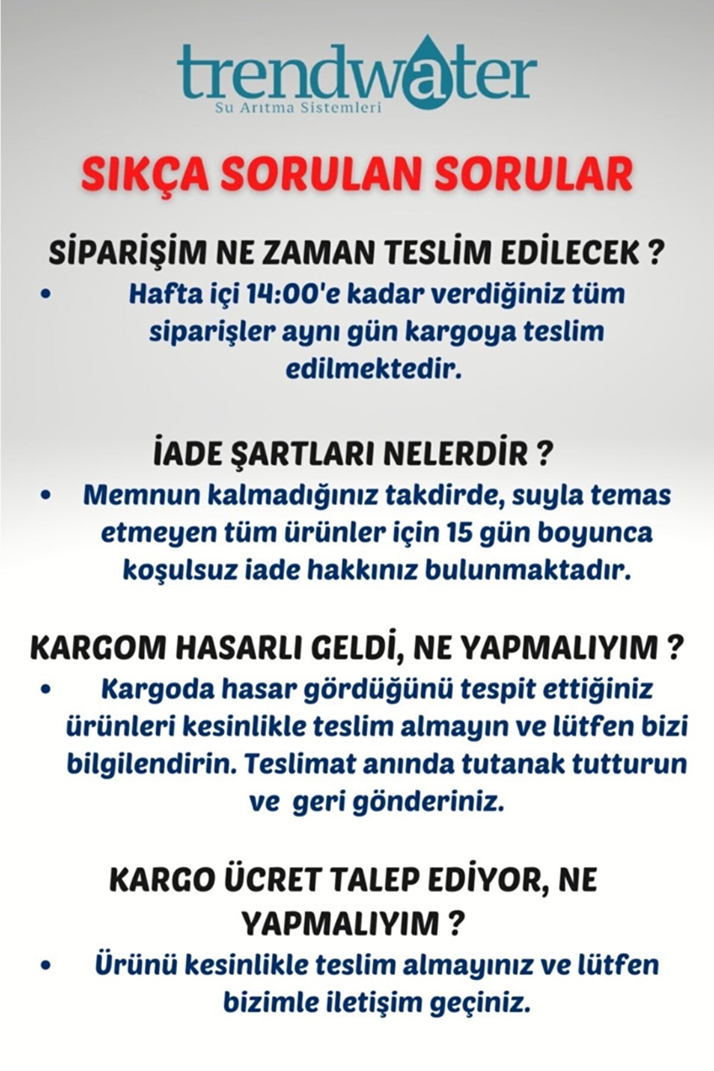 Tahmini Kargoya Teslim : 3 iş günü içerisinde