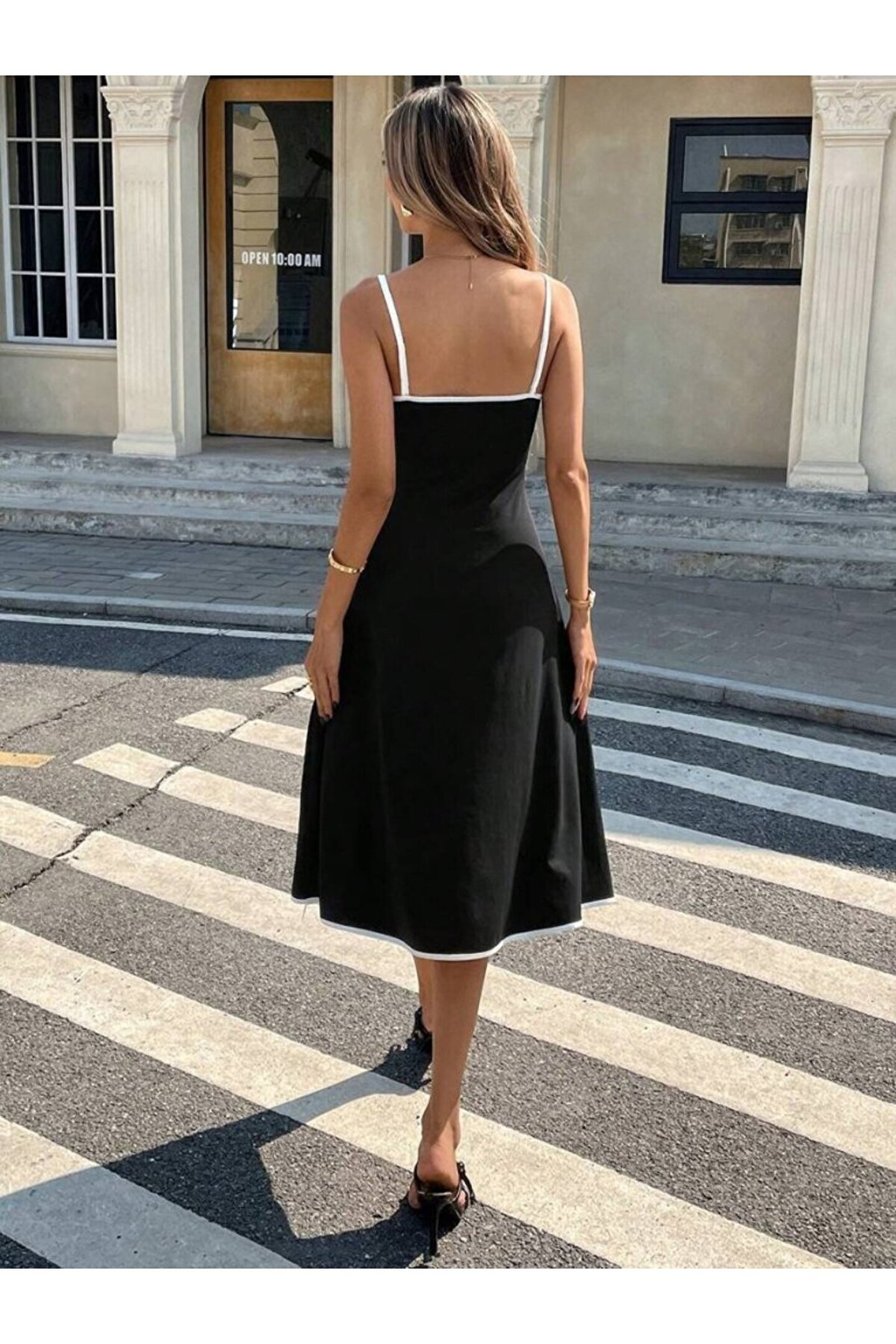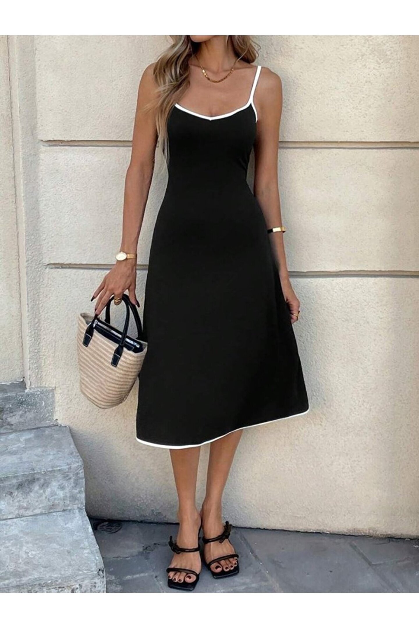 Wear Up EQURİ Kadın Ip Askılı Geniş V Yakalı Midi Janjan Krep Elbise