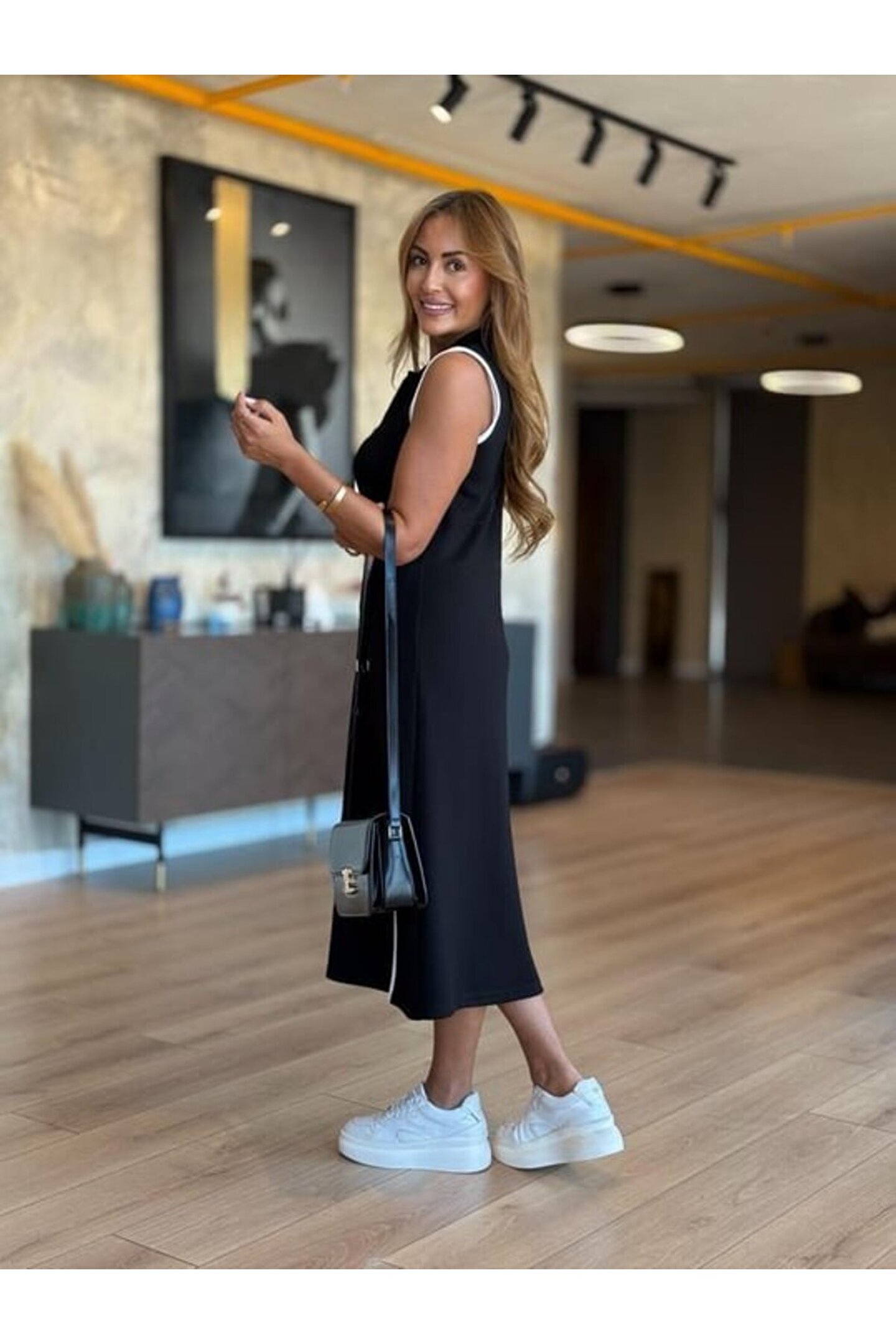 Wear Up EQURİ Kadın Modal Kumaş Fermuarlı Kolsuz Midi Boy Elbise