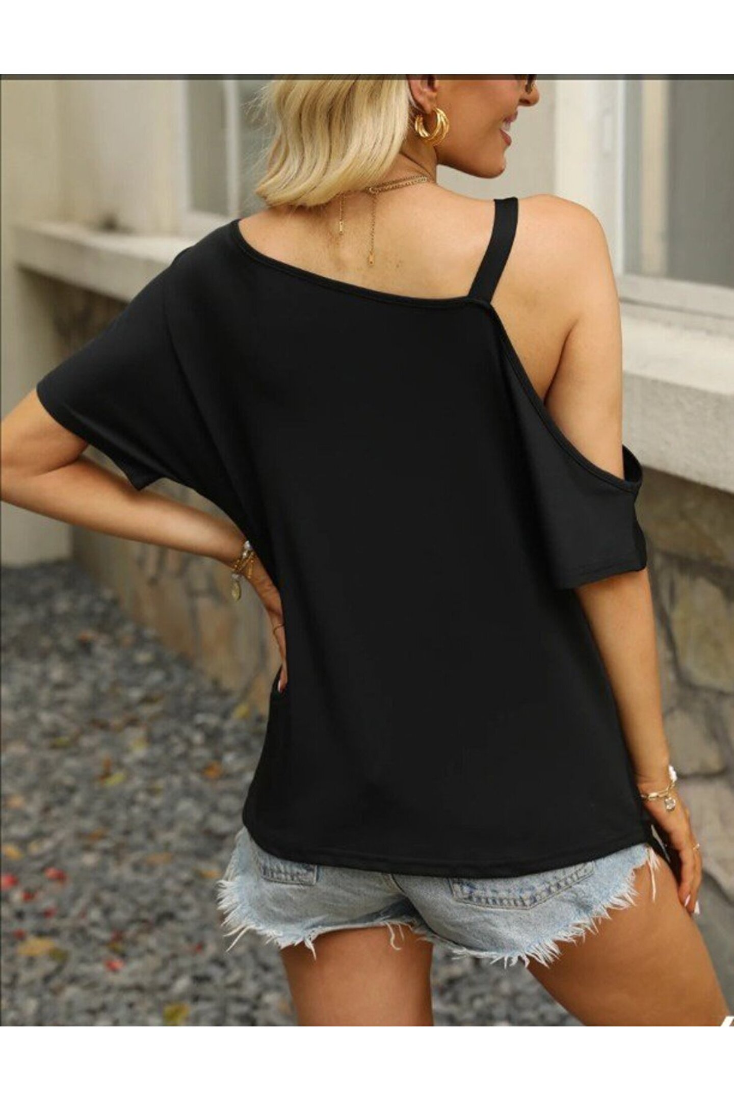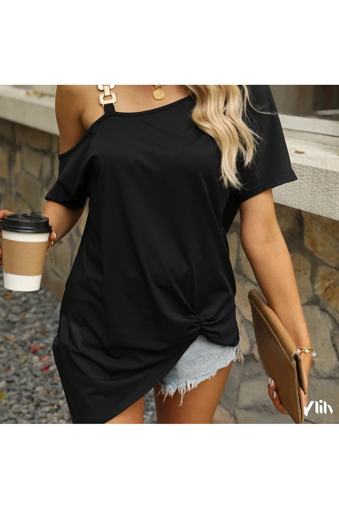 Kadın Tek Omuzu Açık Toka Detaylı Viskon Bluz
