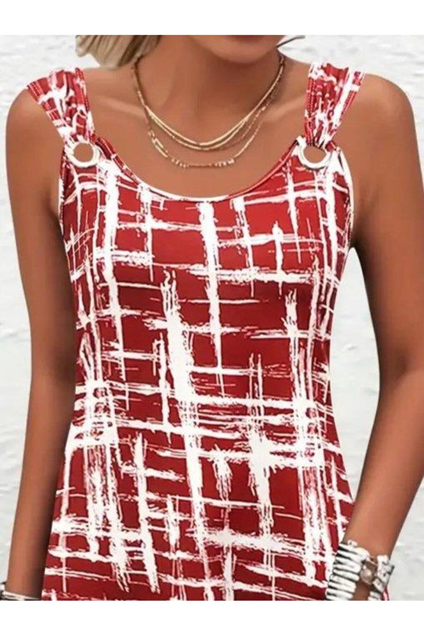 Kadın Askılı Kuş Gözü Detaylı Desenli Süprem Elbise